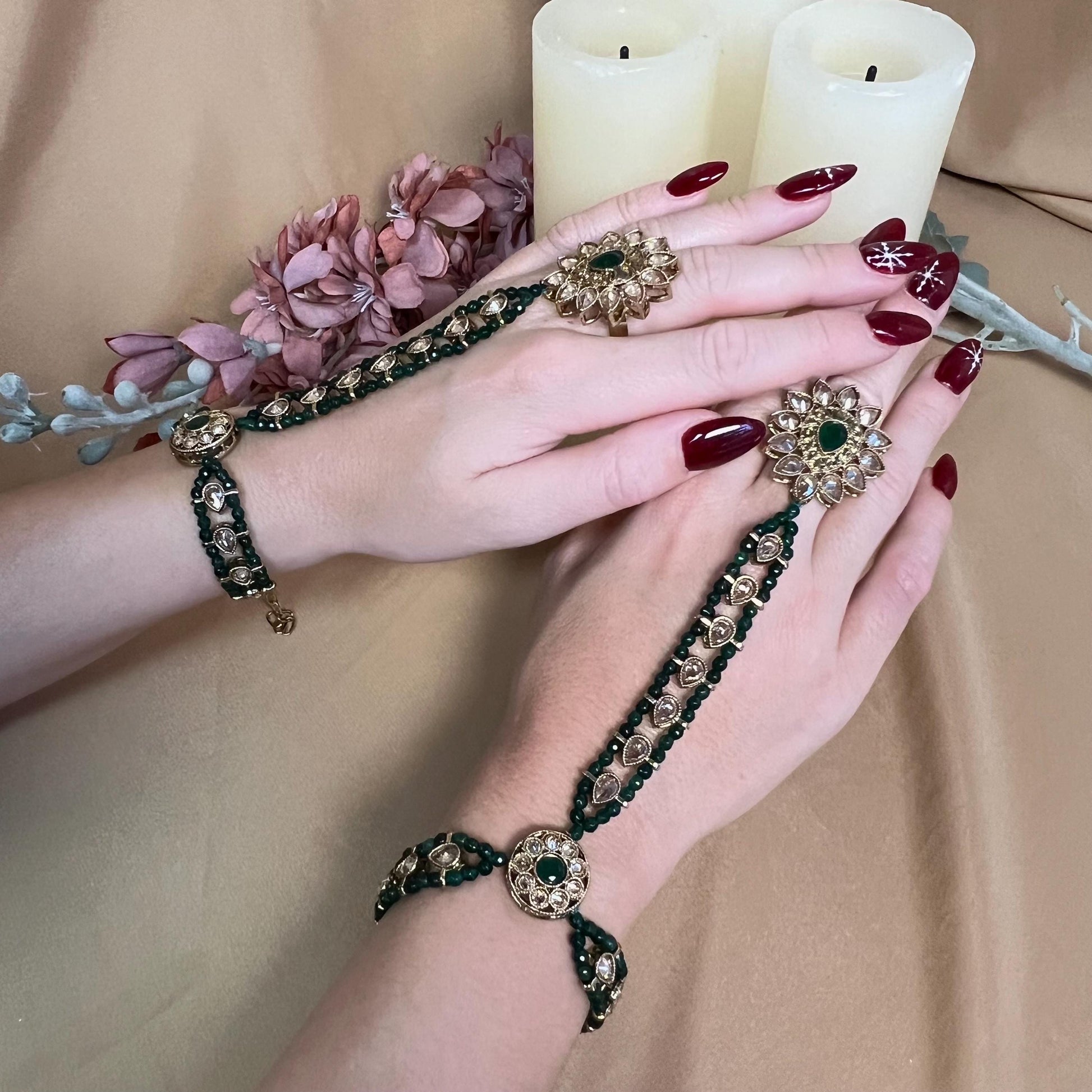 Green Hand Harness/ Fashion Jewellery/ Gift for Women/Indian/Pakistani style /Haathphool/Hand Accessory