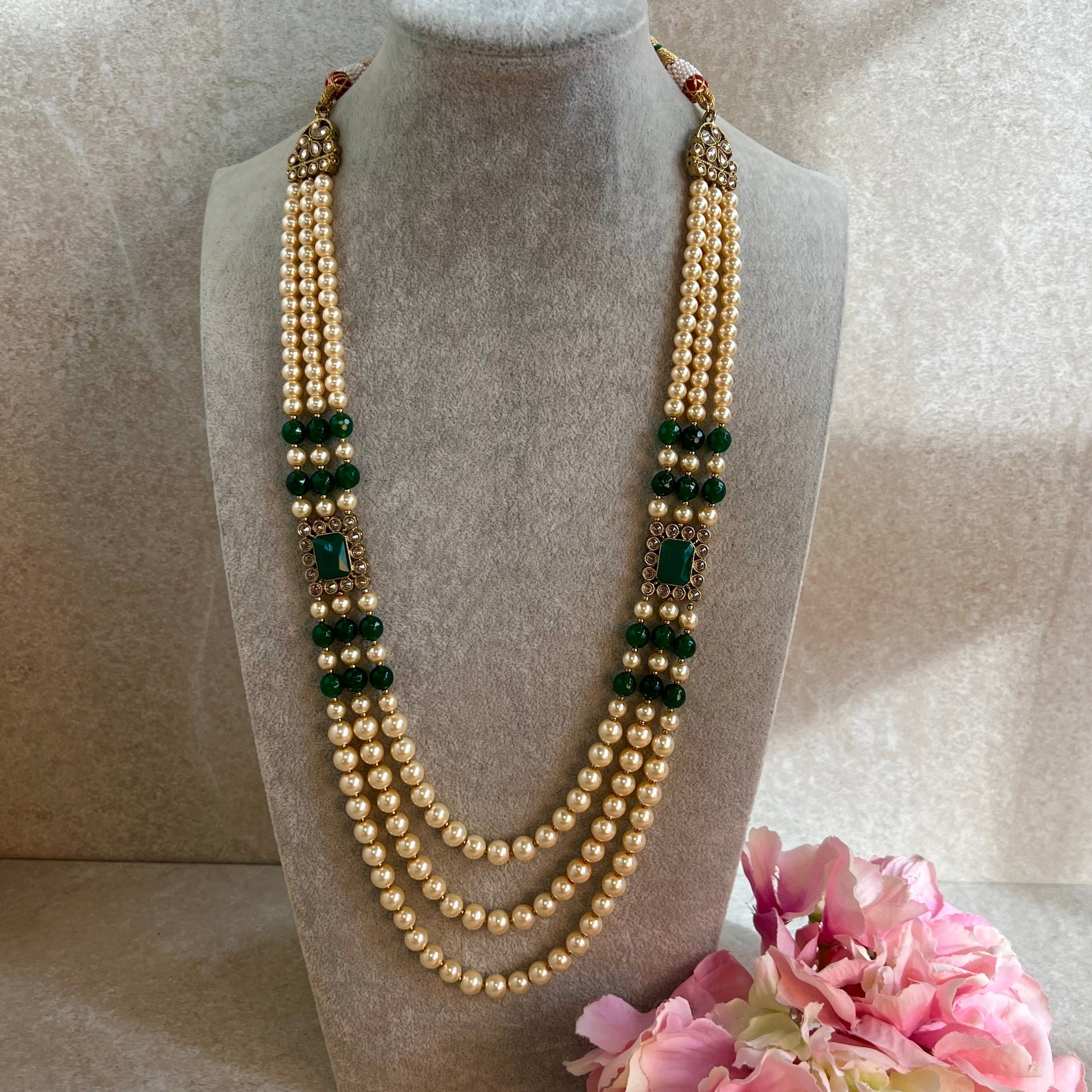 Green Pearl Unisex/ Mens Mala/ Womens Mala/Long Necklace/Long Mala/ Haar/ Unique Style/ Indian/ Pakistani/Fashion Jewellery/ Groom/ Bride