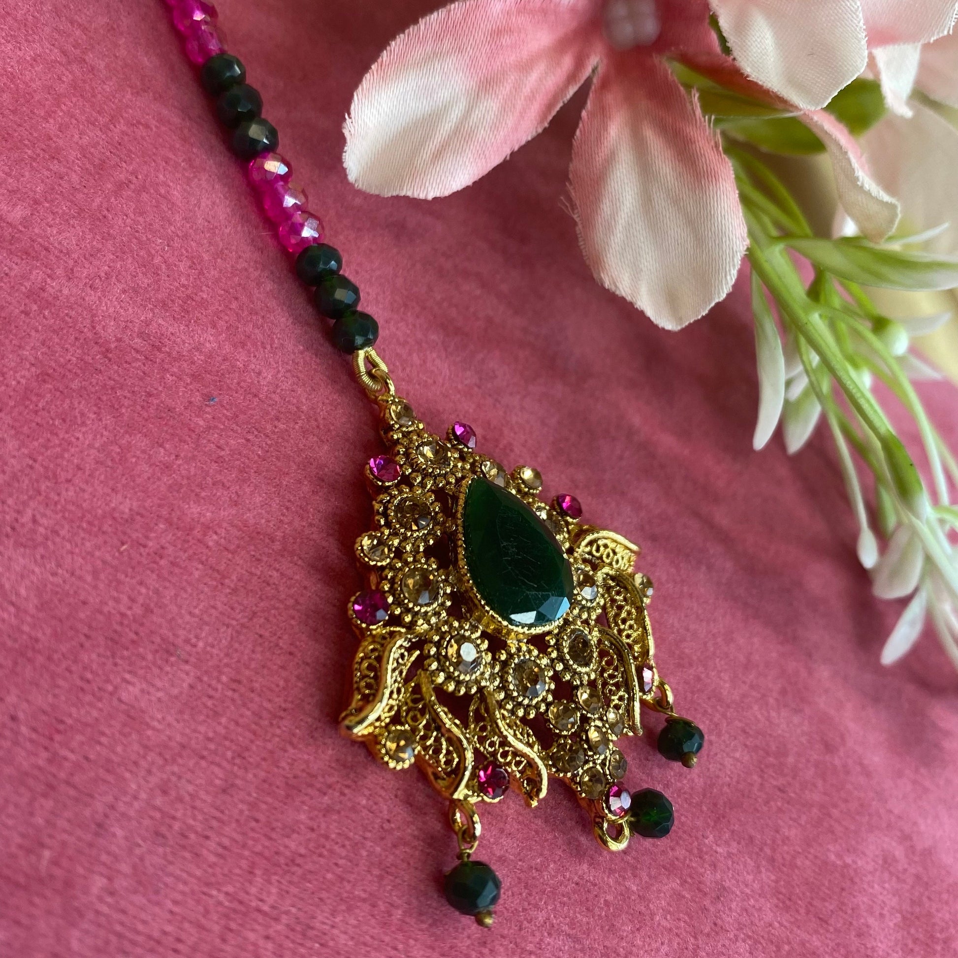 Green/ Pink Tikka/ Tikli/ Indian/ Pakistani Fashion Jewellery/ Maang Tikkas