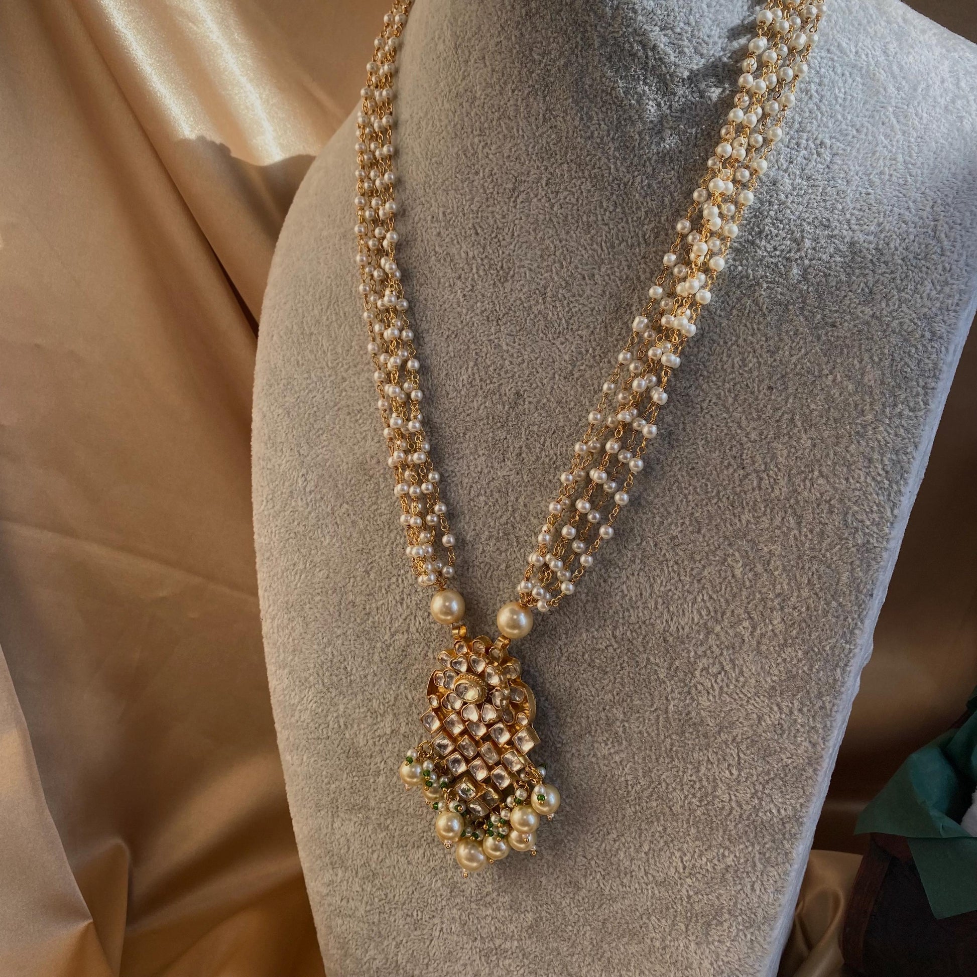 Green Real Kundan Pearl Bright Gold Long Necklace Mala Haar Unique Style Indian Pakistani Fashion Jewellery Gift for Women