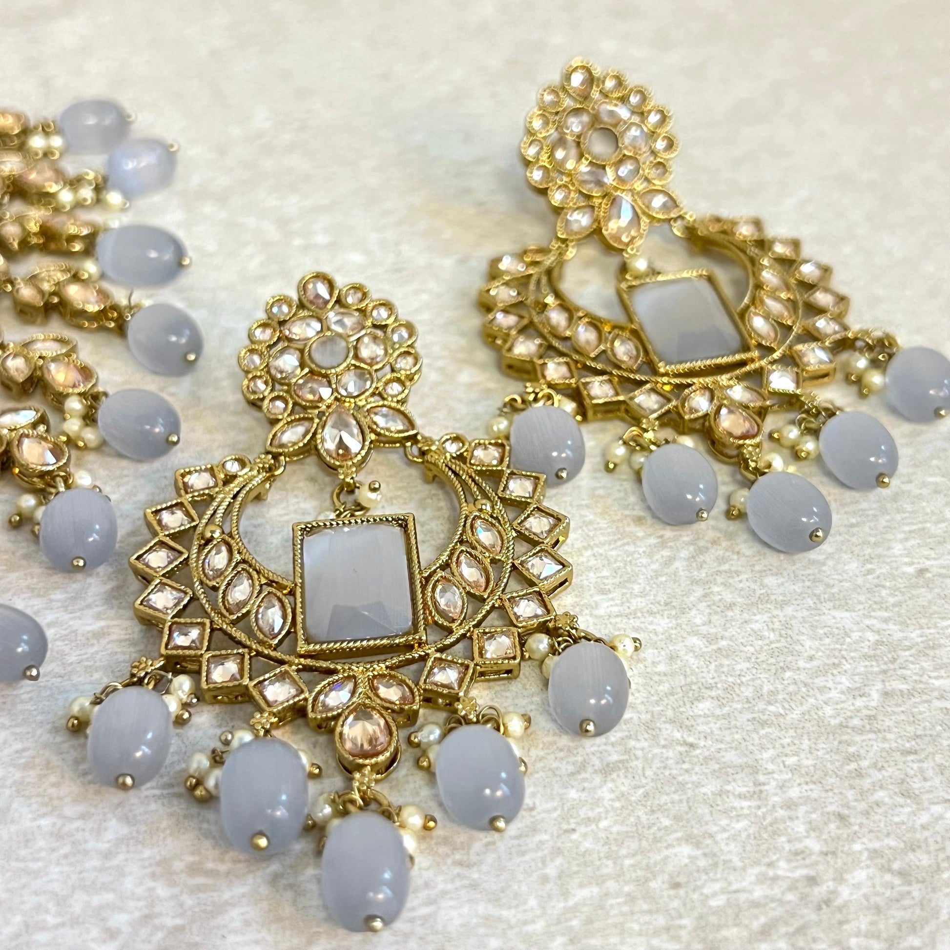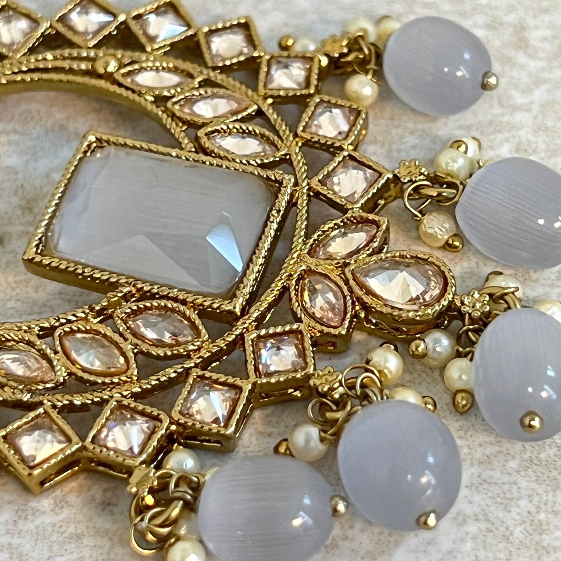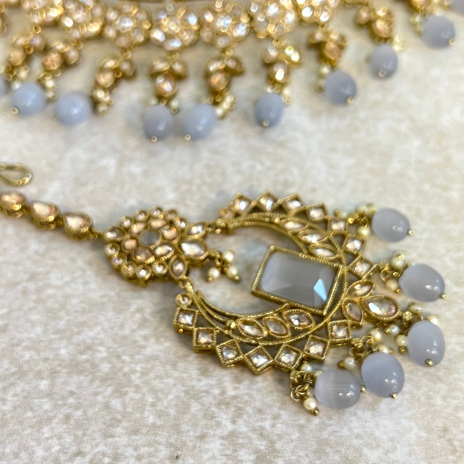 Grey Choker set Earring/ Tikka/ Tikli/ Indian/ Pakistani/Fashion Jewellery/ Gift for Women