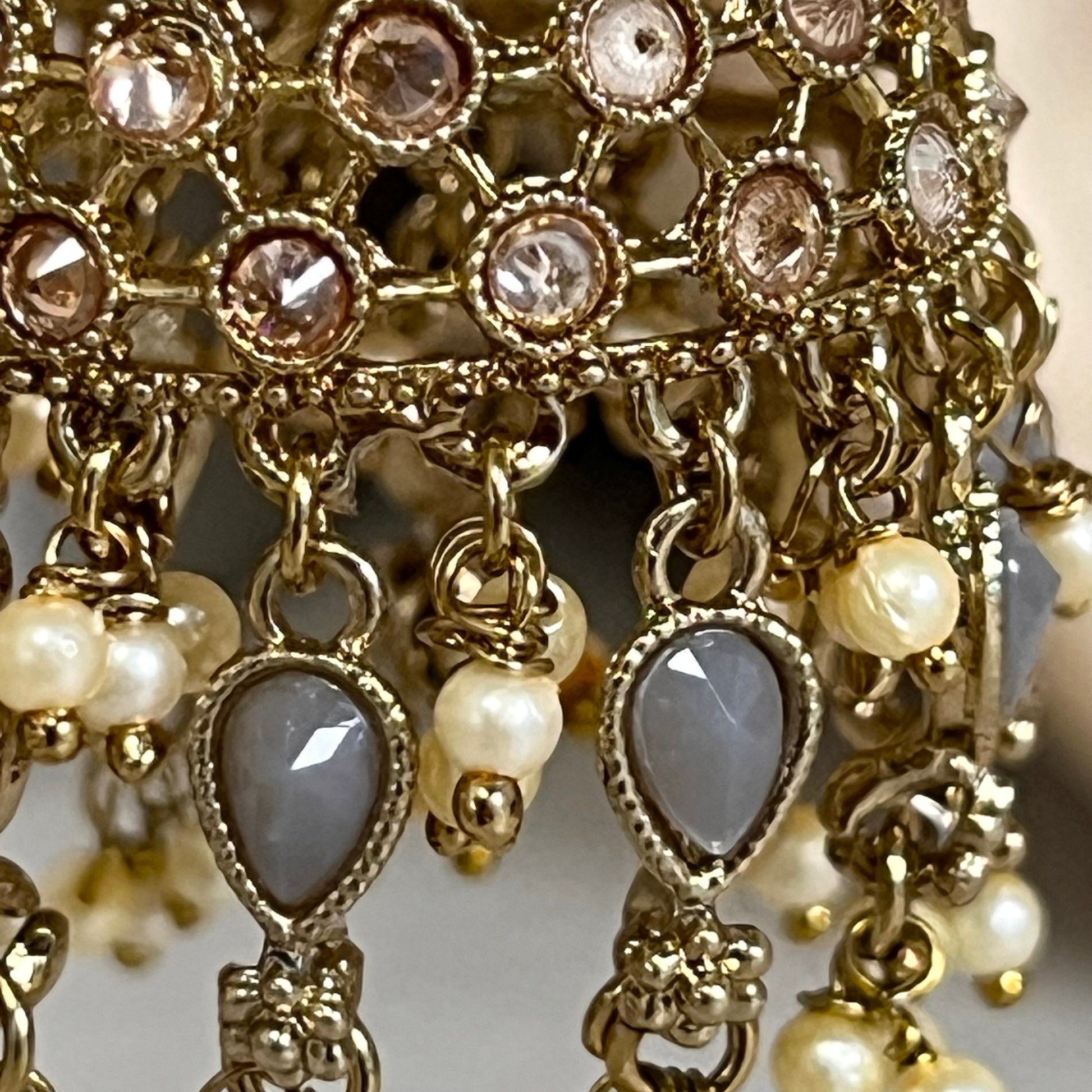 Grey Large Vine Leaf Jhumka Earrings - Indian Style Earring/Pakistani fashion/ Mendhi/Party/Haldi/ Diwali Gift/ Eid Gift