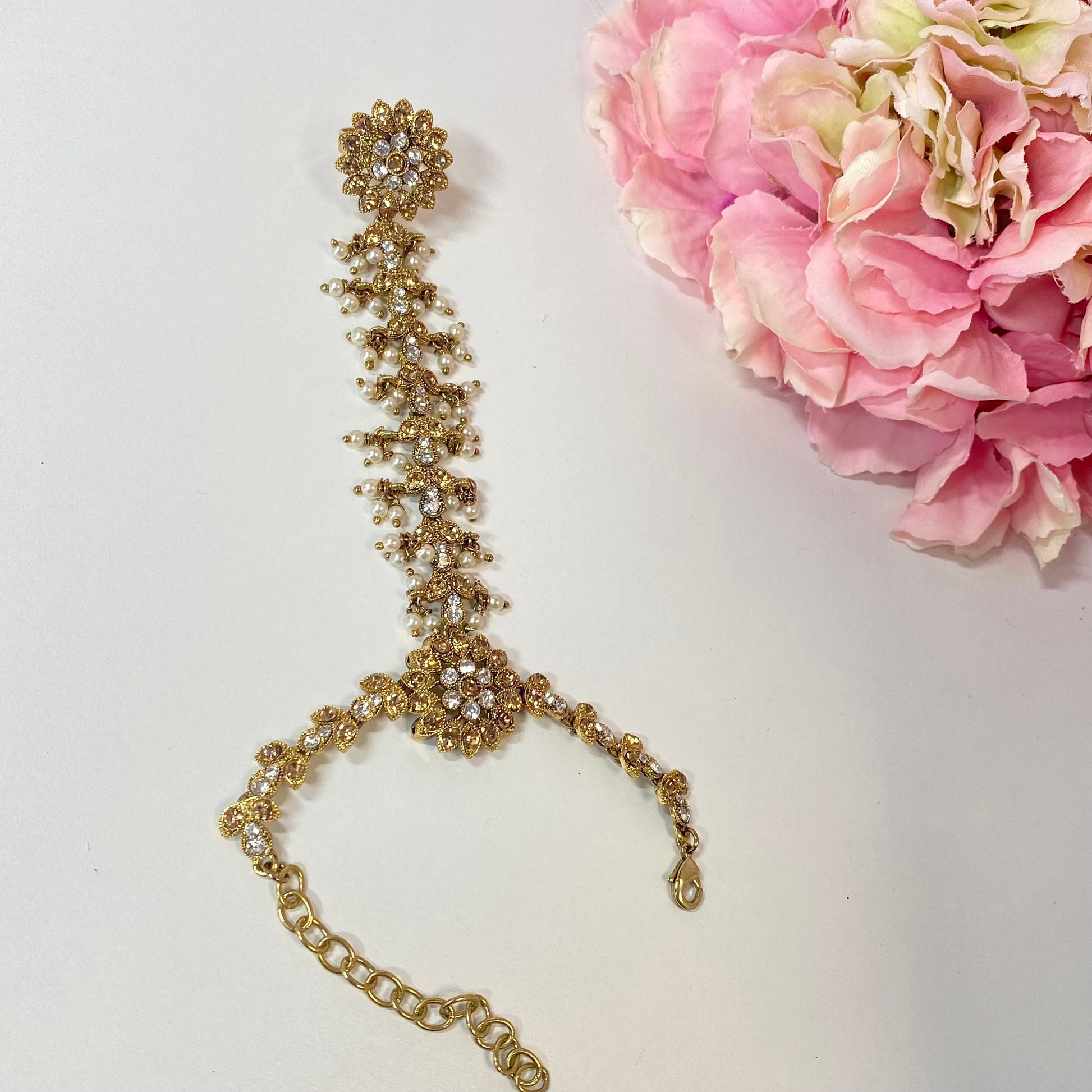 Stunning antique gold with golden, silver and rhinestones hand harnes