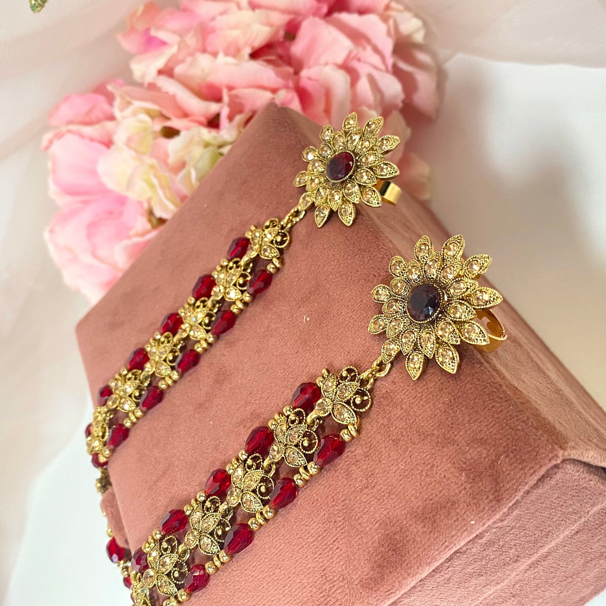 Hand Harness - Maroon/ Golden/ Fashion Jewellery/ Gift for Women/Indian/Pakistani style /Haathphool/Hand Accessory