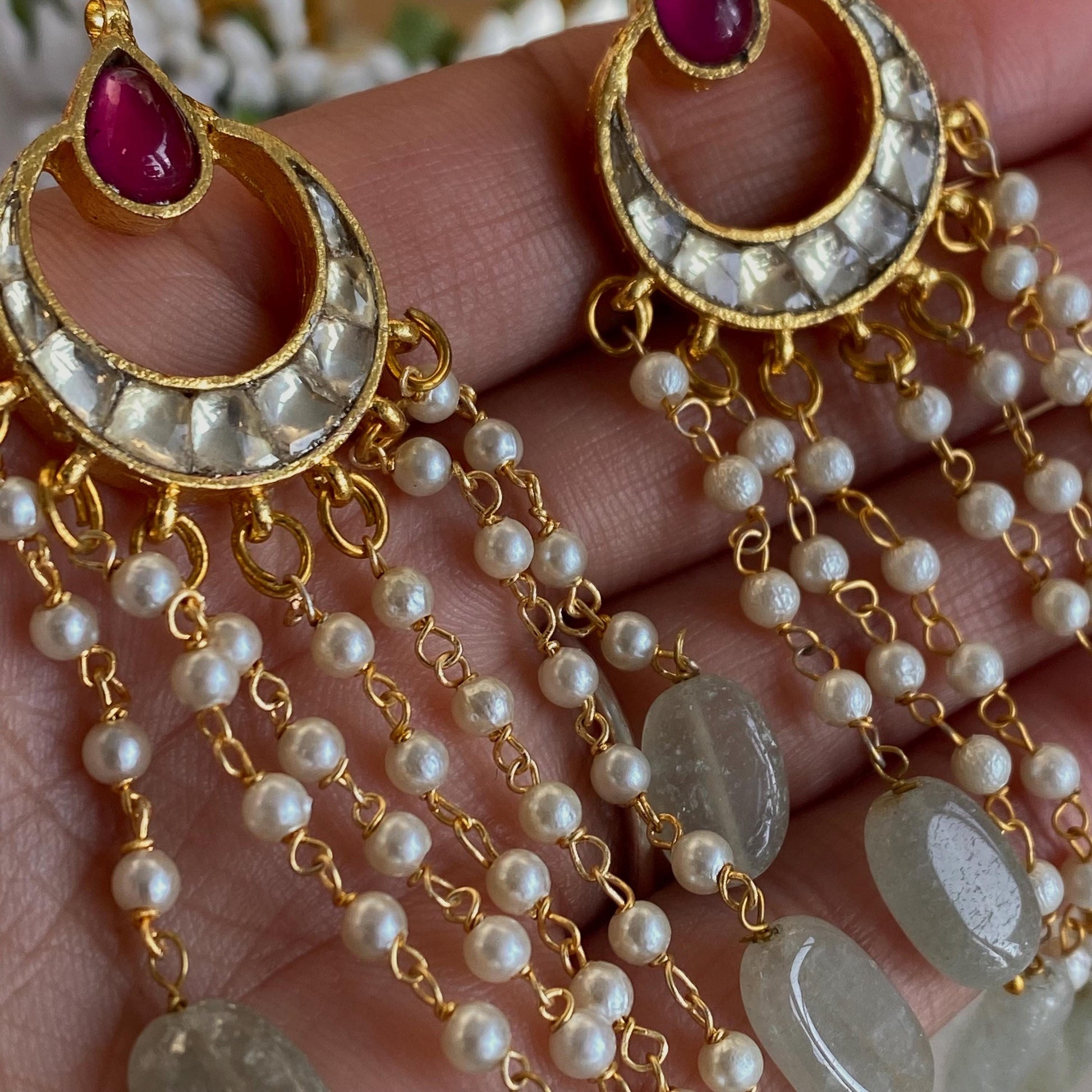 Handcrafted Ruby and Jade Green Indian Kundan Earrings - Traditional Bridal Jewelry High Quality