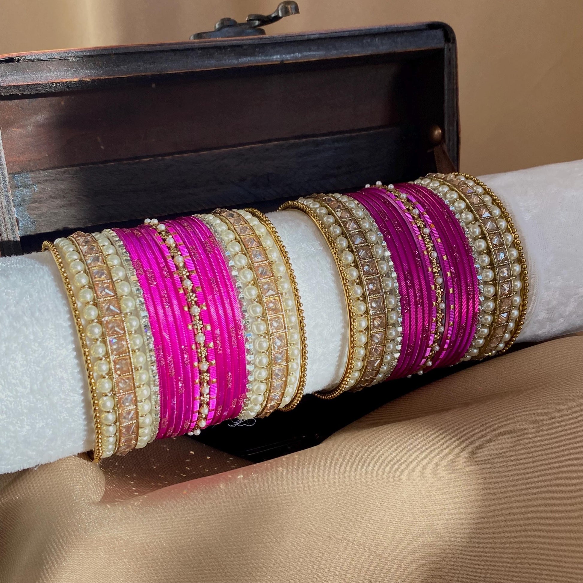 Hot Pink Bangle Set/Indian/Hot Pink Bangles/ Pearly Bangles/Pakistani/Jewellery/Valentines Collection