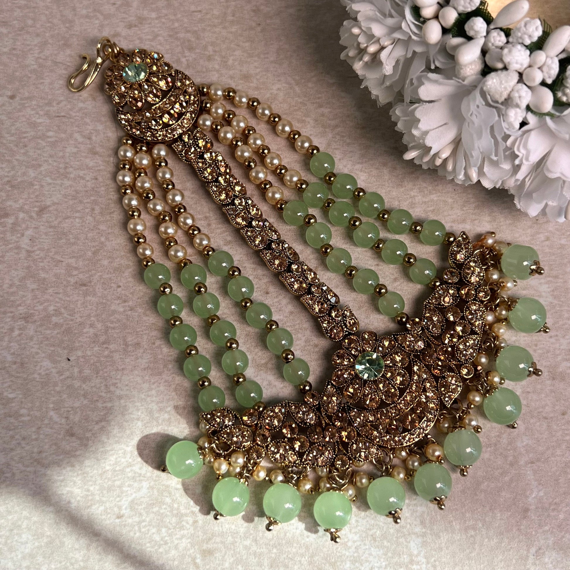 Jhumar/Mint/Gold/Mint Bead/Golden Rhinestone/ Jhoomar / Passa/ Indian/ Pakistani Style/Head Piece