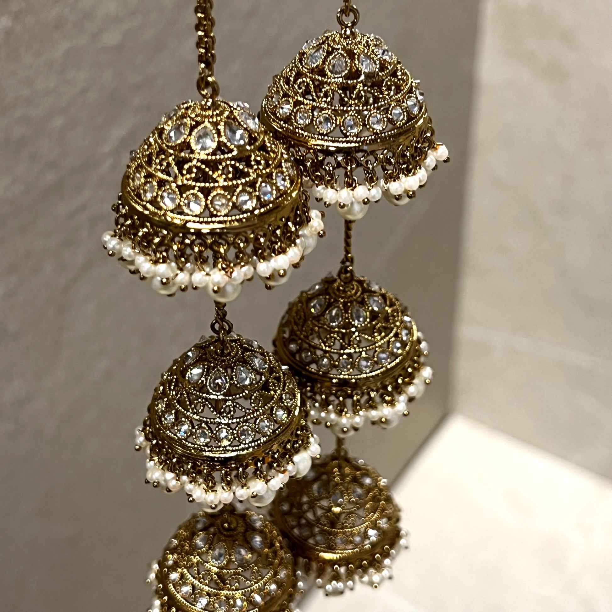 Kaleera (Pair) Antique Gold with Clear Zircon Crystals. Adjustable one size fits all