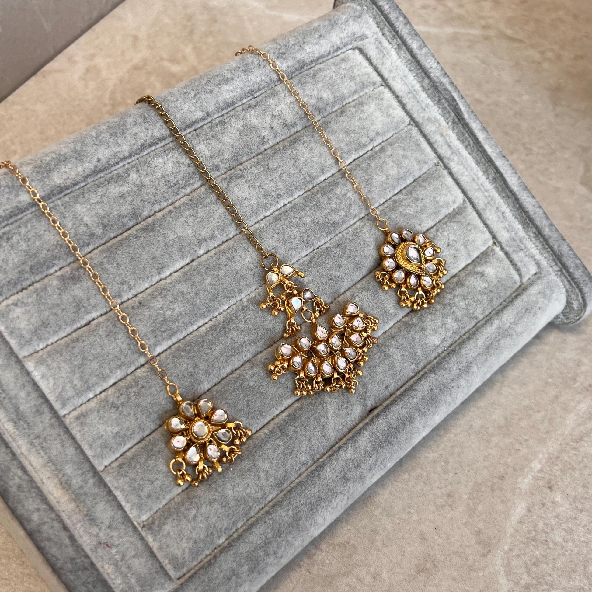 This small size real Kundan tikka with clear stone is perfect for any occasion