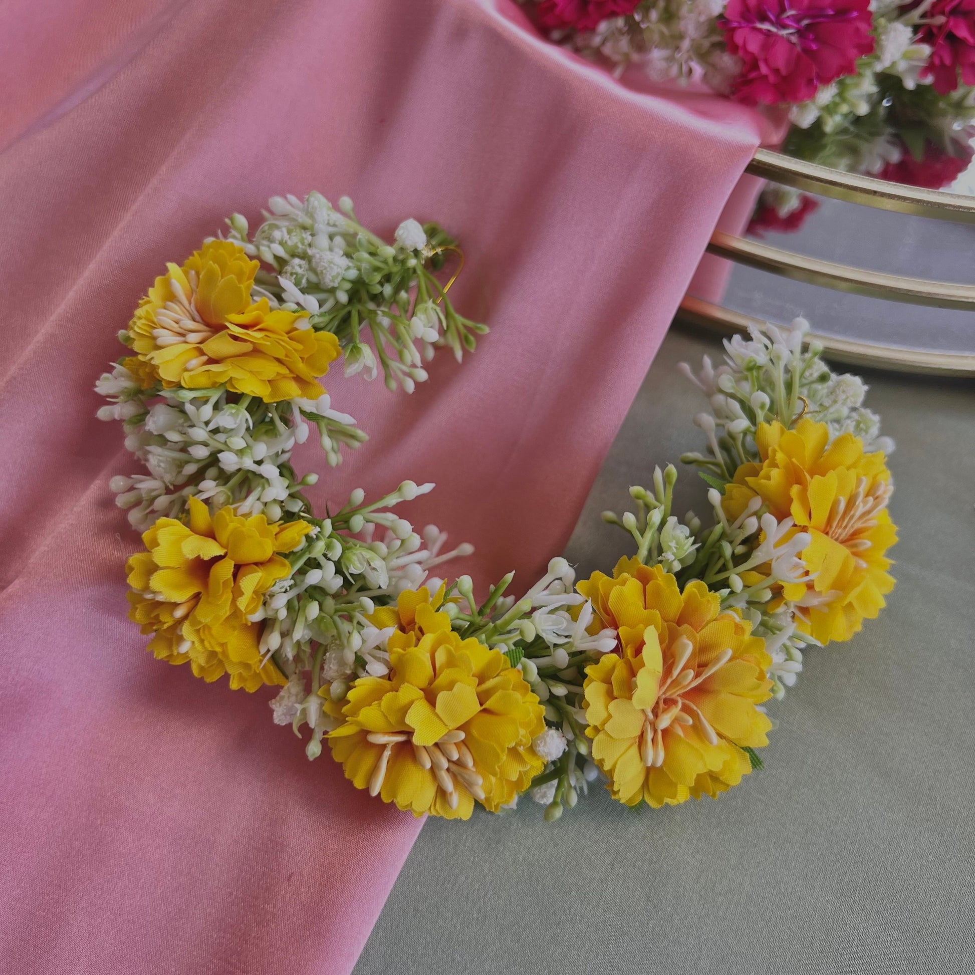 Ladies Floral Bun Gajra Artificial Flower Accessory - Yellow/ Unique Style/ Indian/ Pakistani/Fashion Jewellery/ Gift for Women