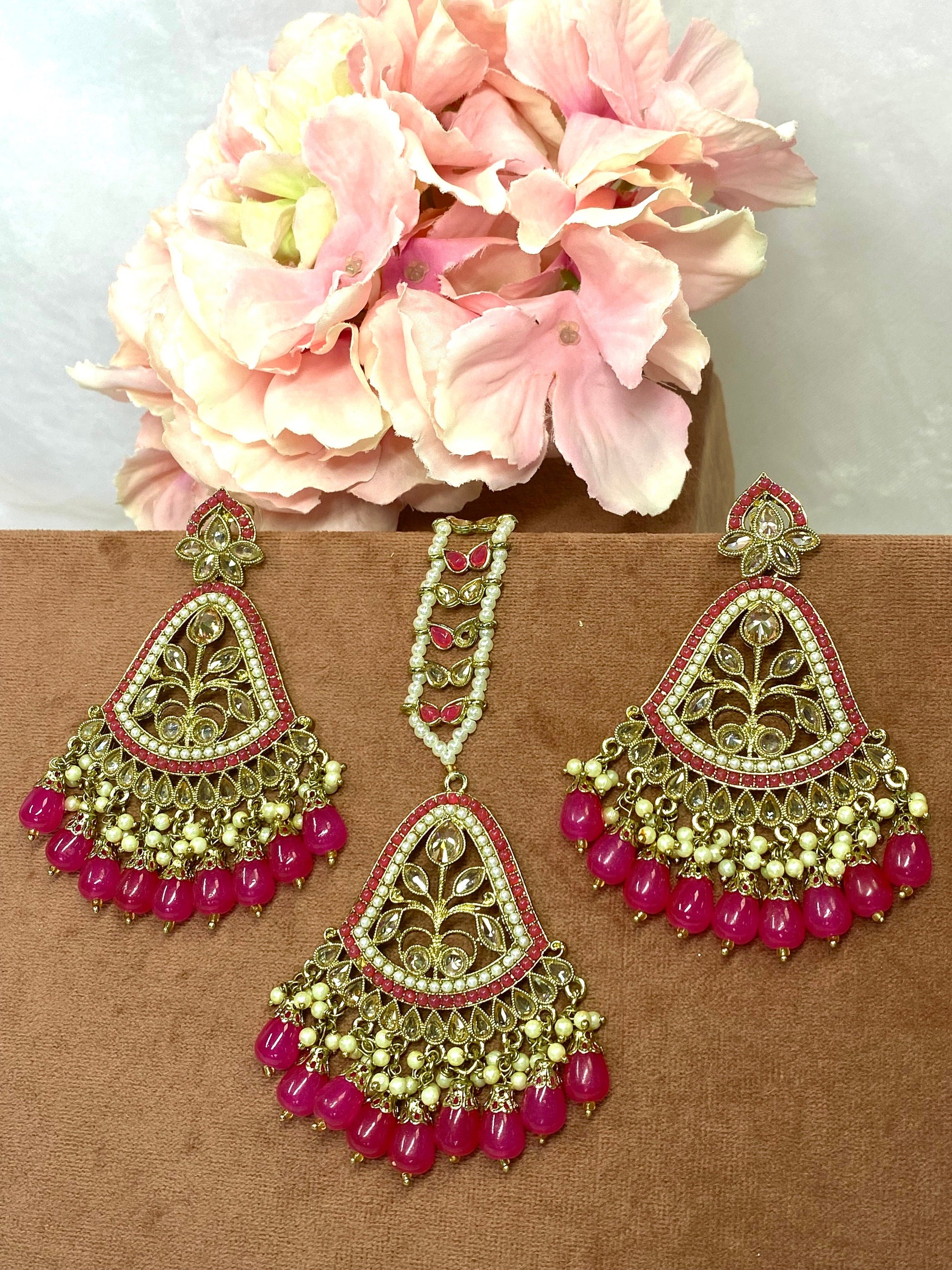 Large Earring and Tikka Set- Fushsia/Flat Earring Indian/ Pakistani Style