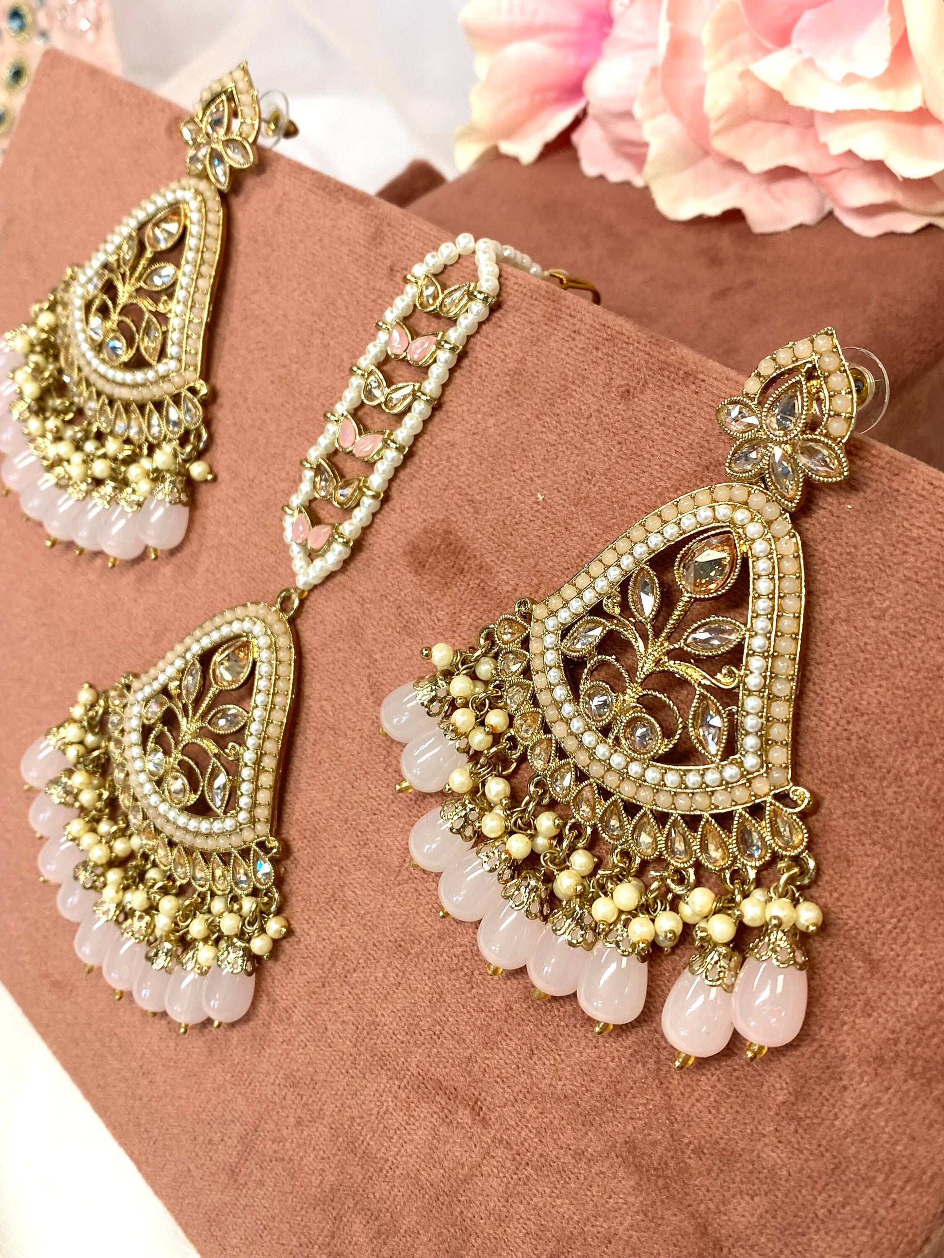 Large Earring and Tikka Set- Light Pink/Flat Earring Indian/ Pakistani Style