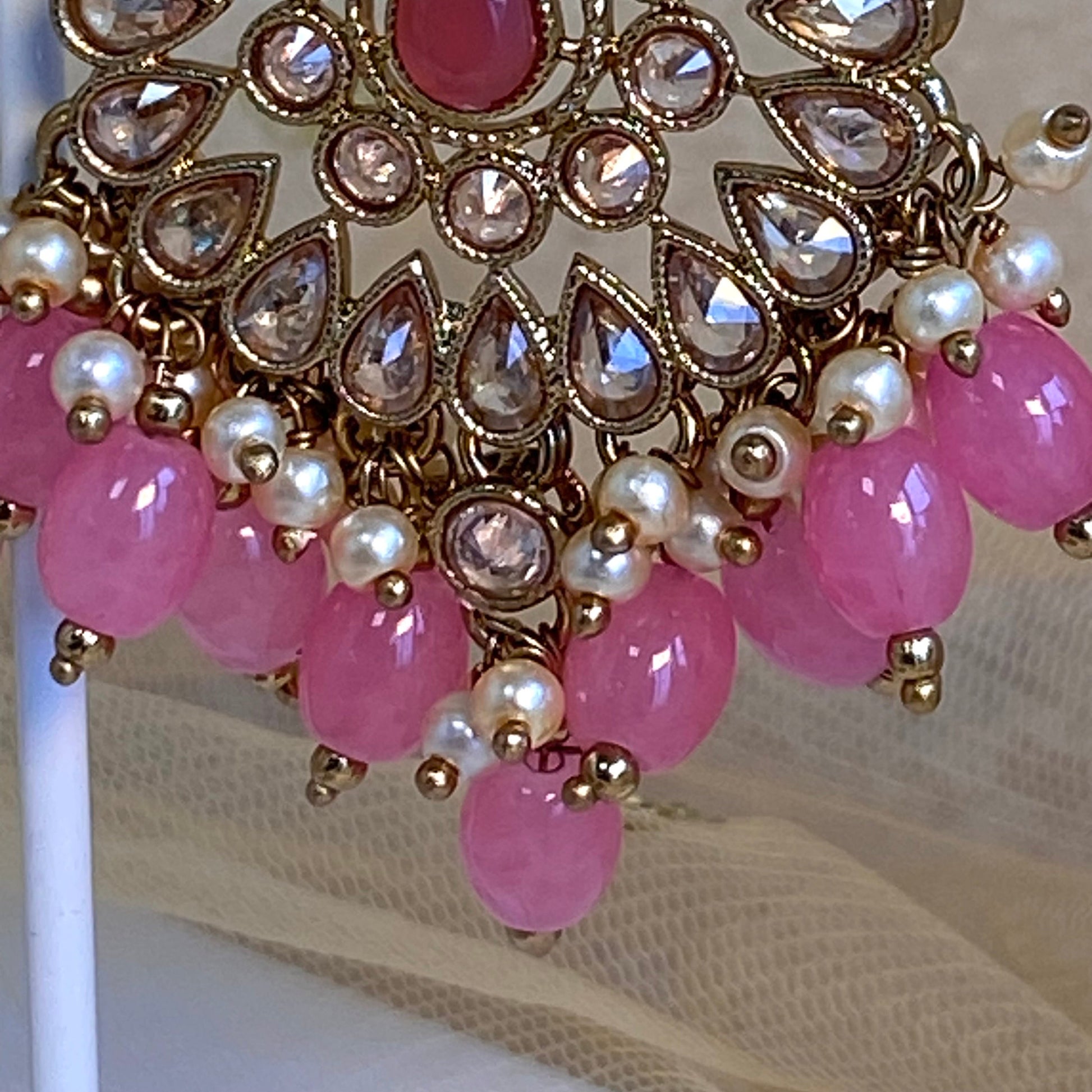 Large Earring and Tikka Set- Pink/ Earring Indian/ Pakistani Style/ Jhumki/ Tikli
