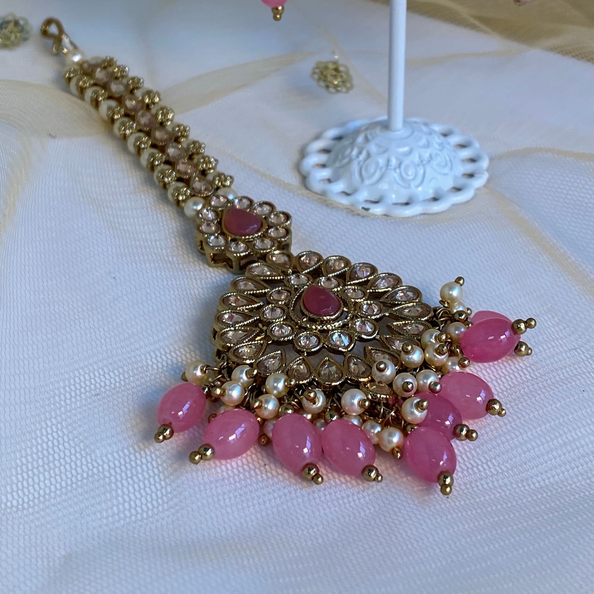 Large Earring and Tikka Set- Pink/ Earring Indian/ Pakistani Style/ Jhumki/ Tikli