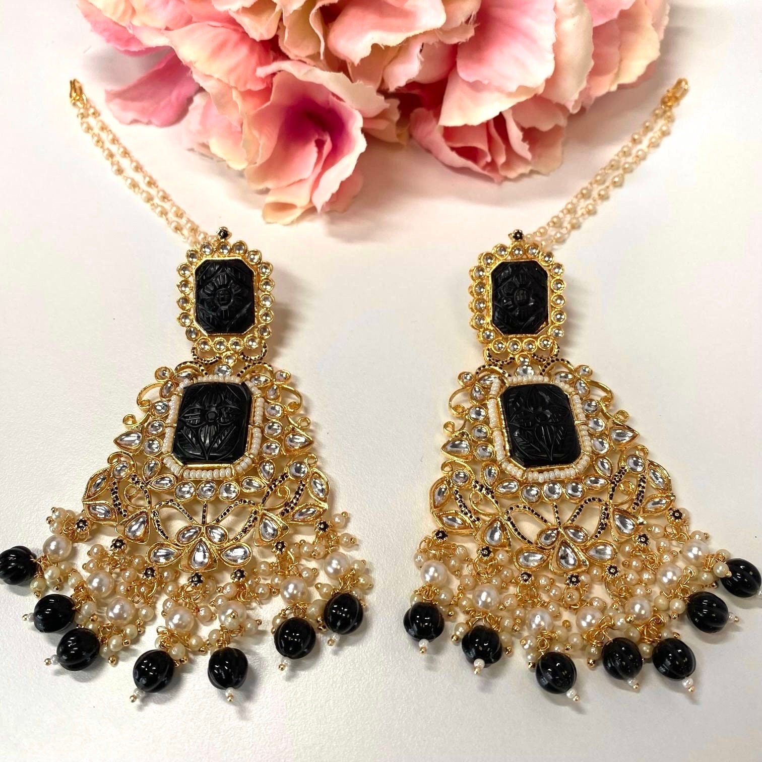 Large Faux-Kundan Earrings - Black Indian Style Earring/ Pakistani Fashion/ Fashion Jewellery/ Gift for Women