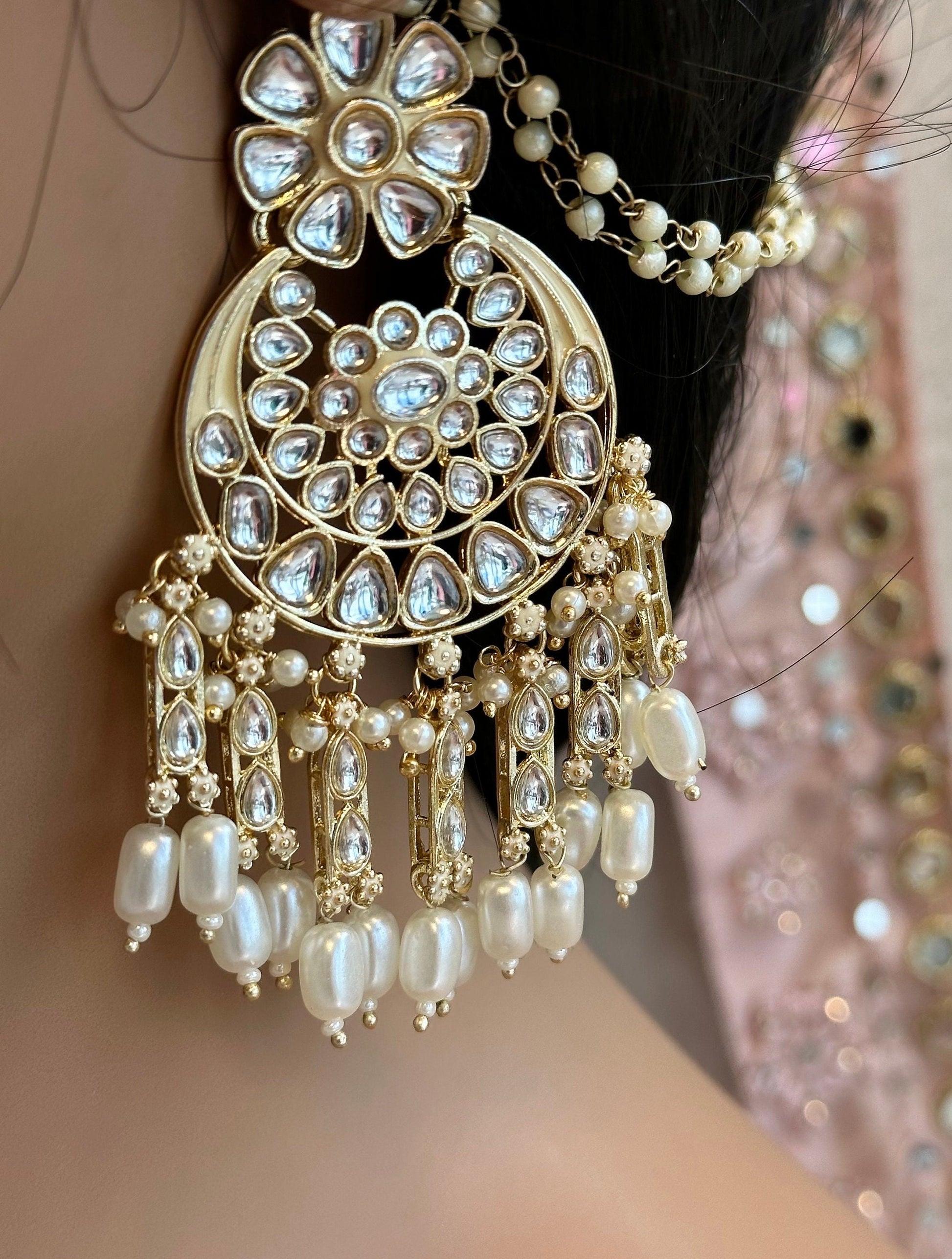 This faux kudan earrings and tikka set comes with attached ear chains and matching tikka. This is also available in cream colour option please check out our shop.