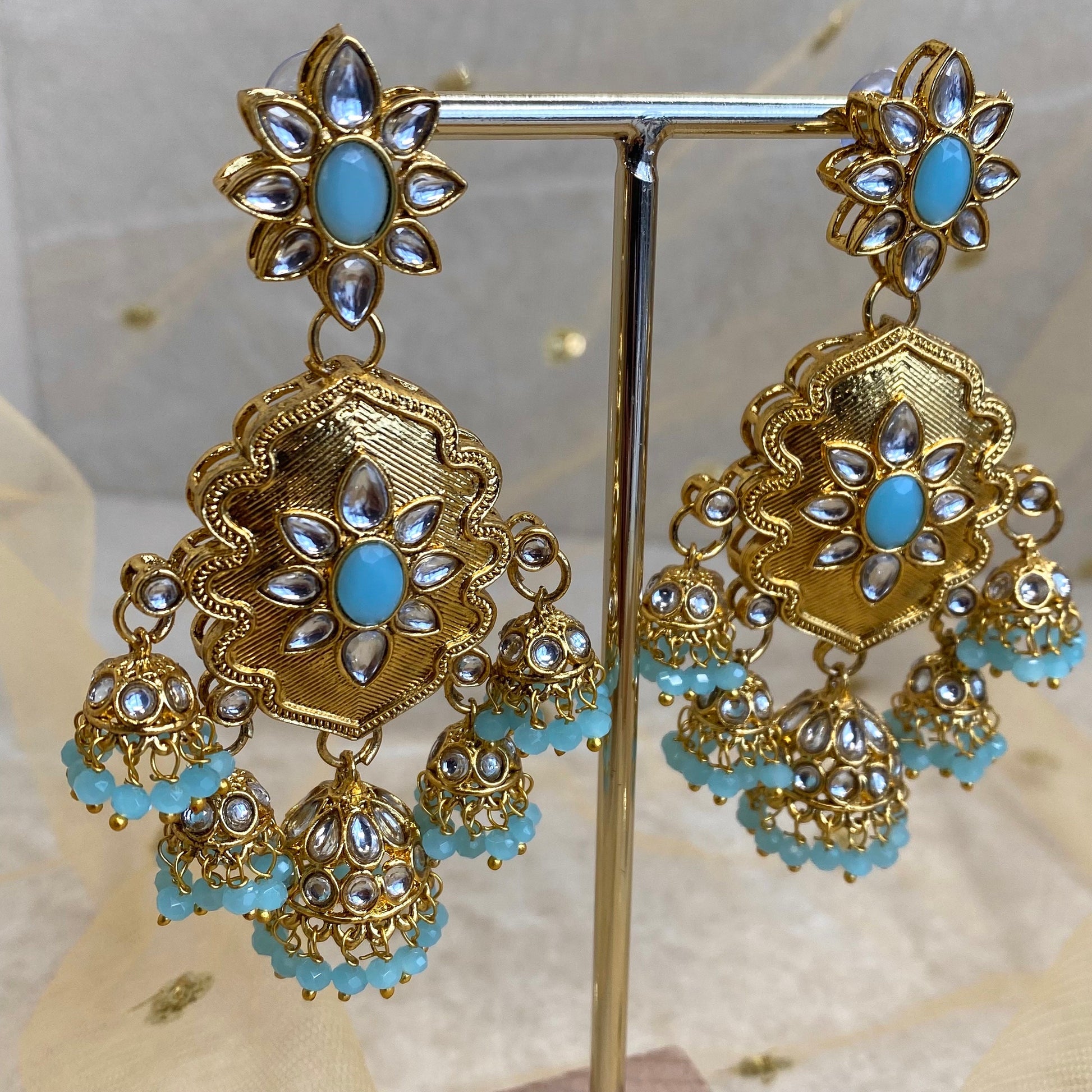 Large Gold Jhumka detail Earring - Blue/ Fashion Jewellery/ Gift for Women/Indian/Pakistani style