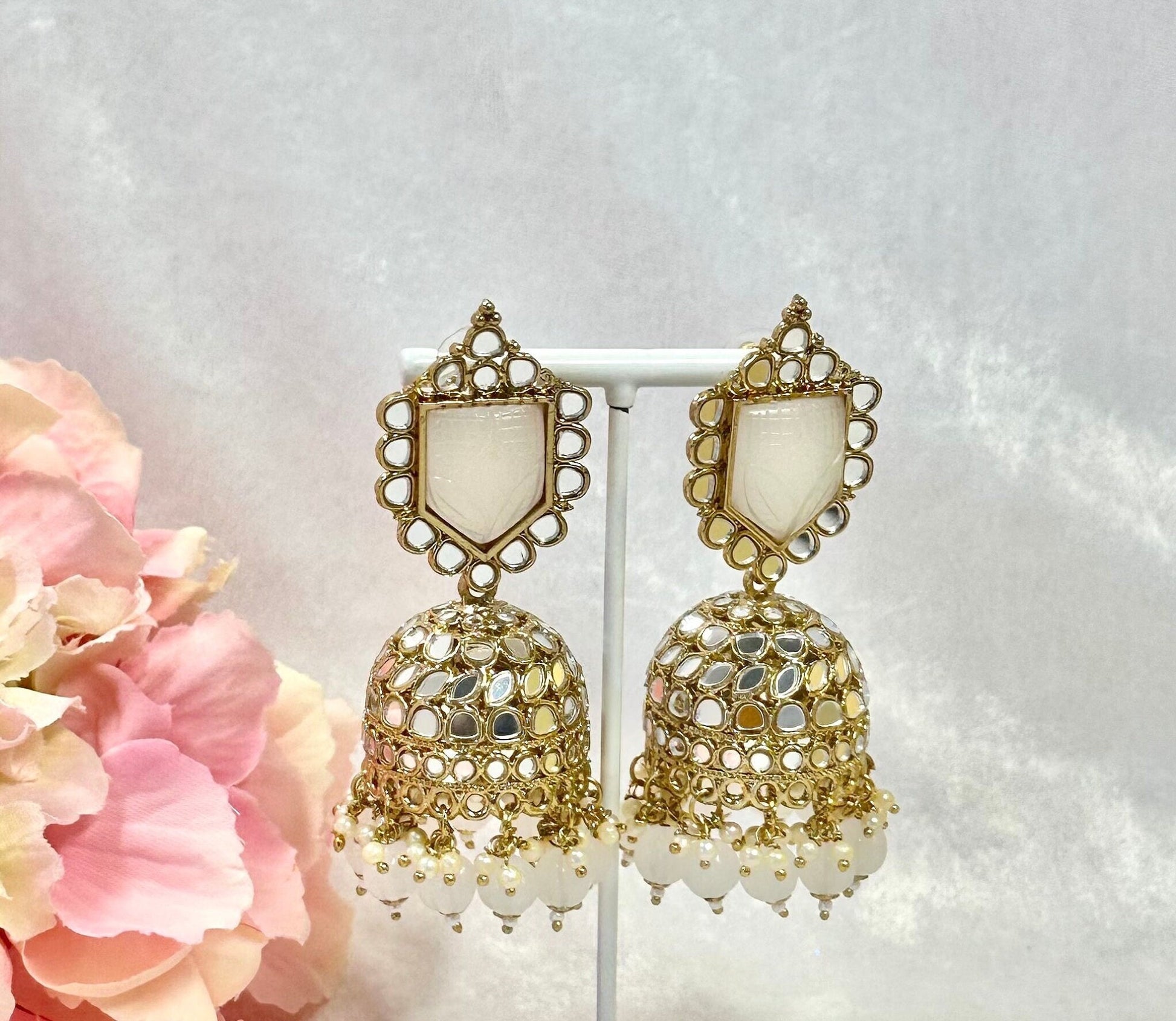 large mirror jhumka earrings comes in 4 different beautiful colours