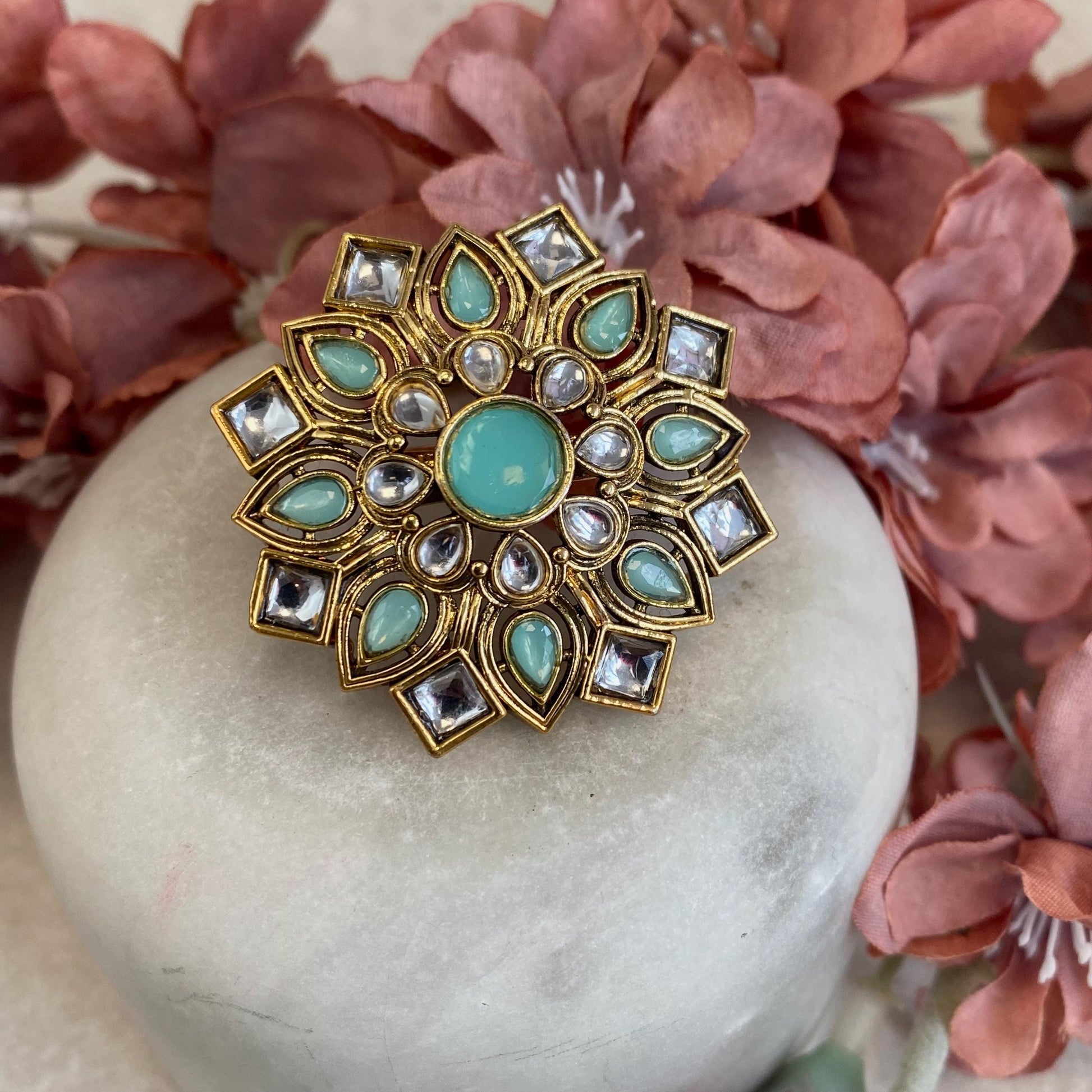 Light Blue Adjustable Kundan Ring/ Fashion Jewellery/ Gift for Women/Indian/Pakistani style