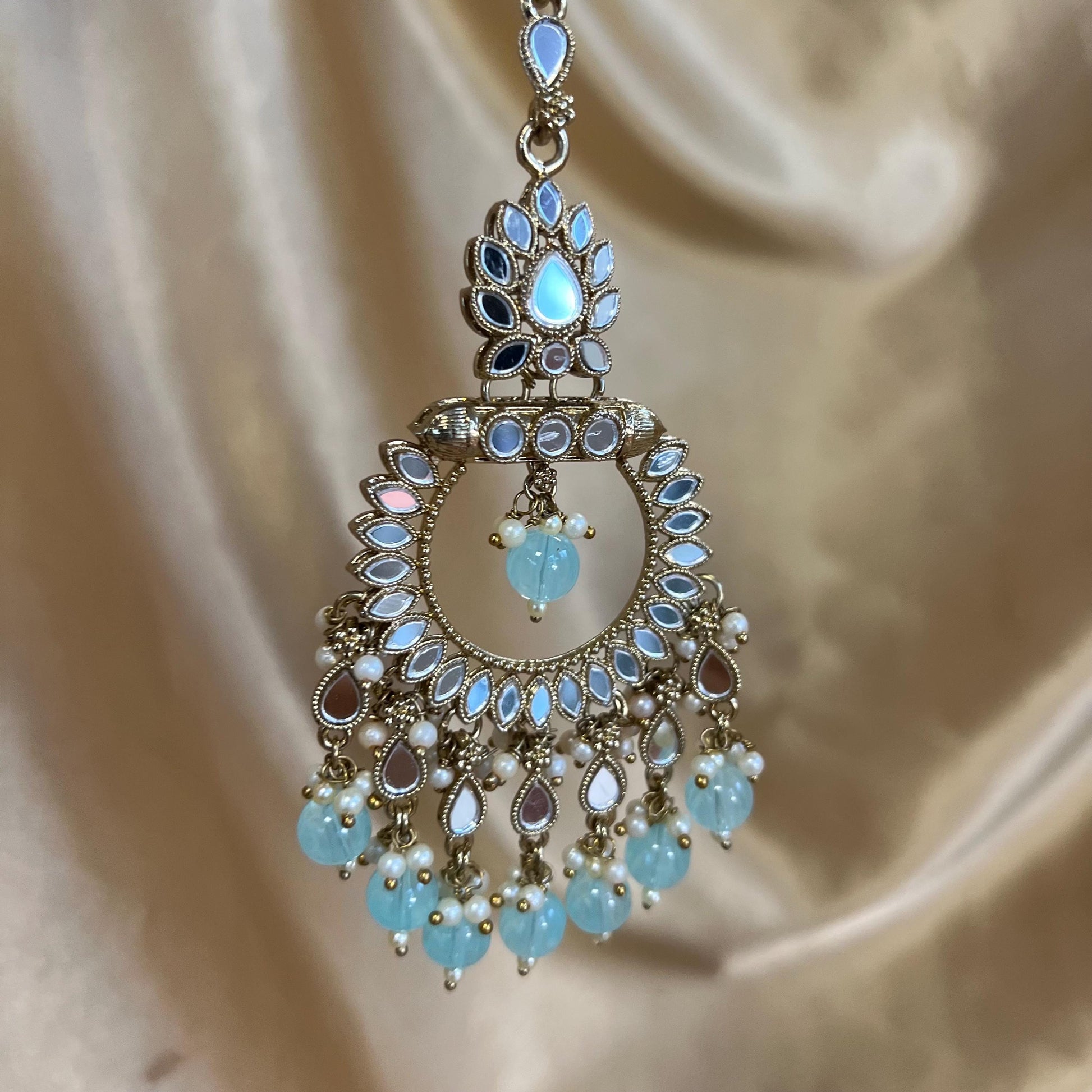 Light Blue Mirrored Tikka (Medium)/ Tikli/ Indian/ Pakistani Fashion Jewellery/Maang Tikkas