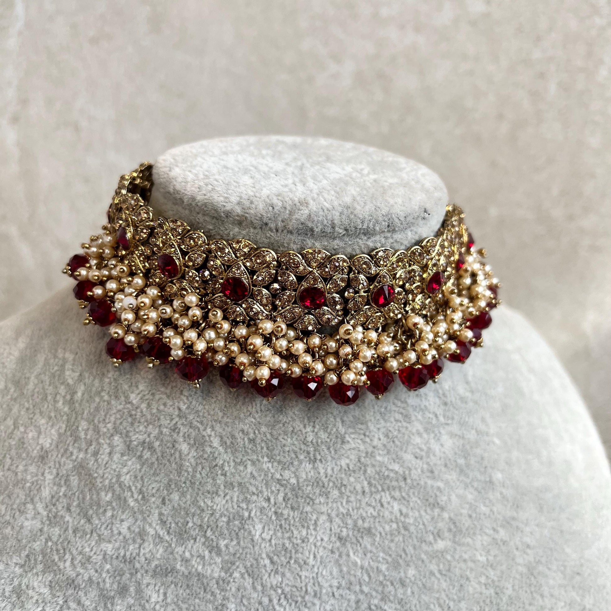 Maroon Antique Gold choker Only Golden Rhinestone 1 inch Adjustable Jewellery Indian Pakistani Fashion Wedding Gift Bridal Guest Heavy