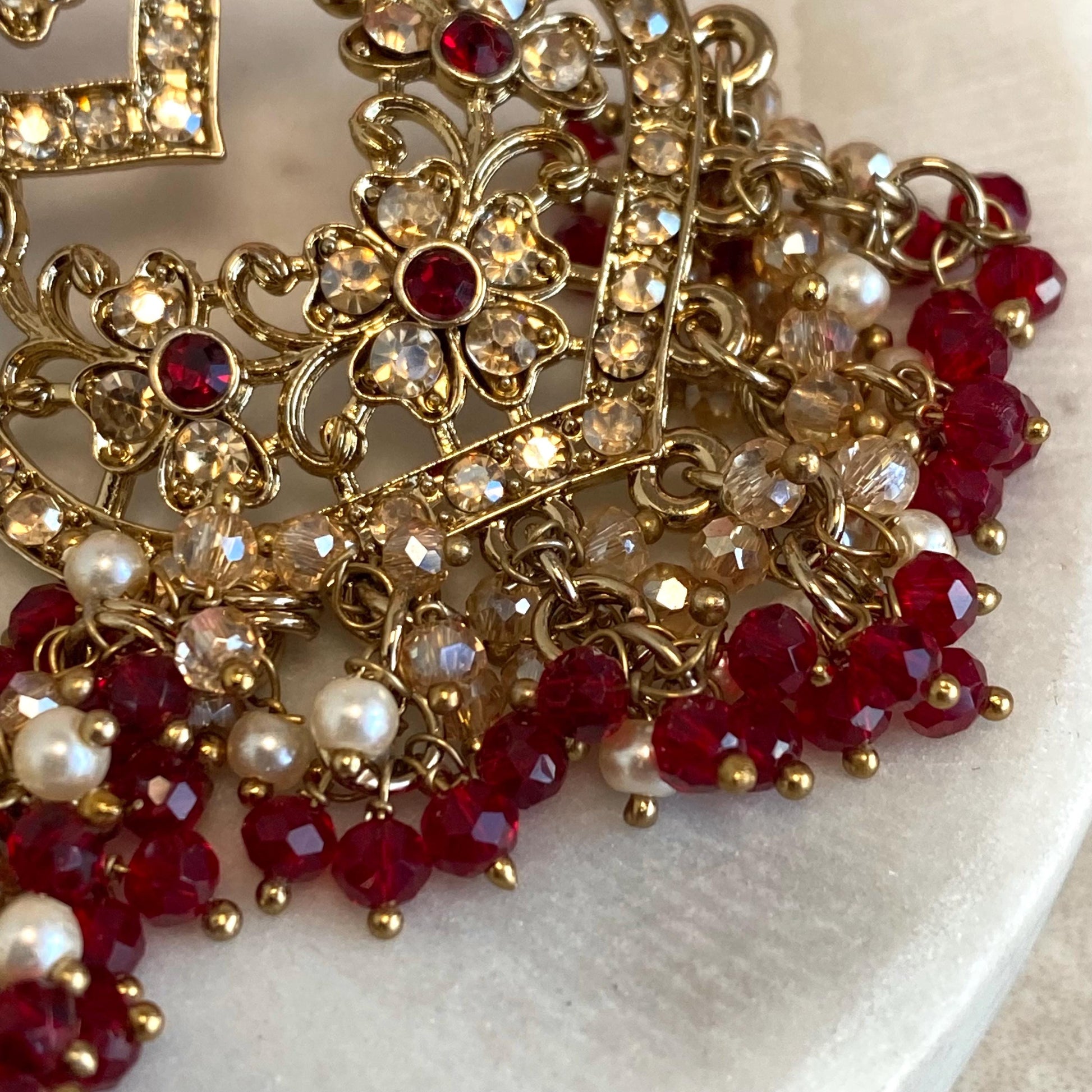 Maroon Antique Gold Golden Rhinestone Stud Medium Size Lightweight Earring High Quality Indian Pakistani Bollywood Fashion Jewellery Gift