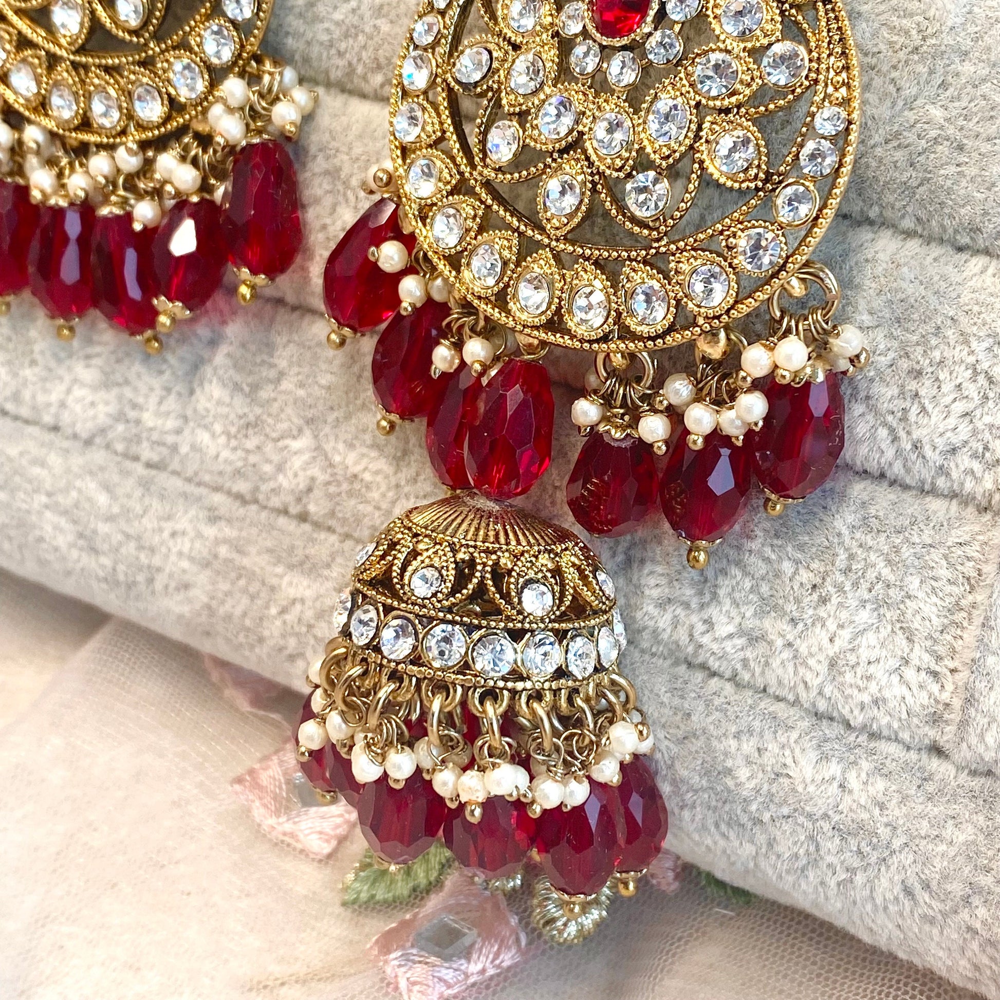 Maroon bridal necklace set/ Jhumki Earring Indian/ Pakistani Style