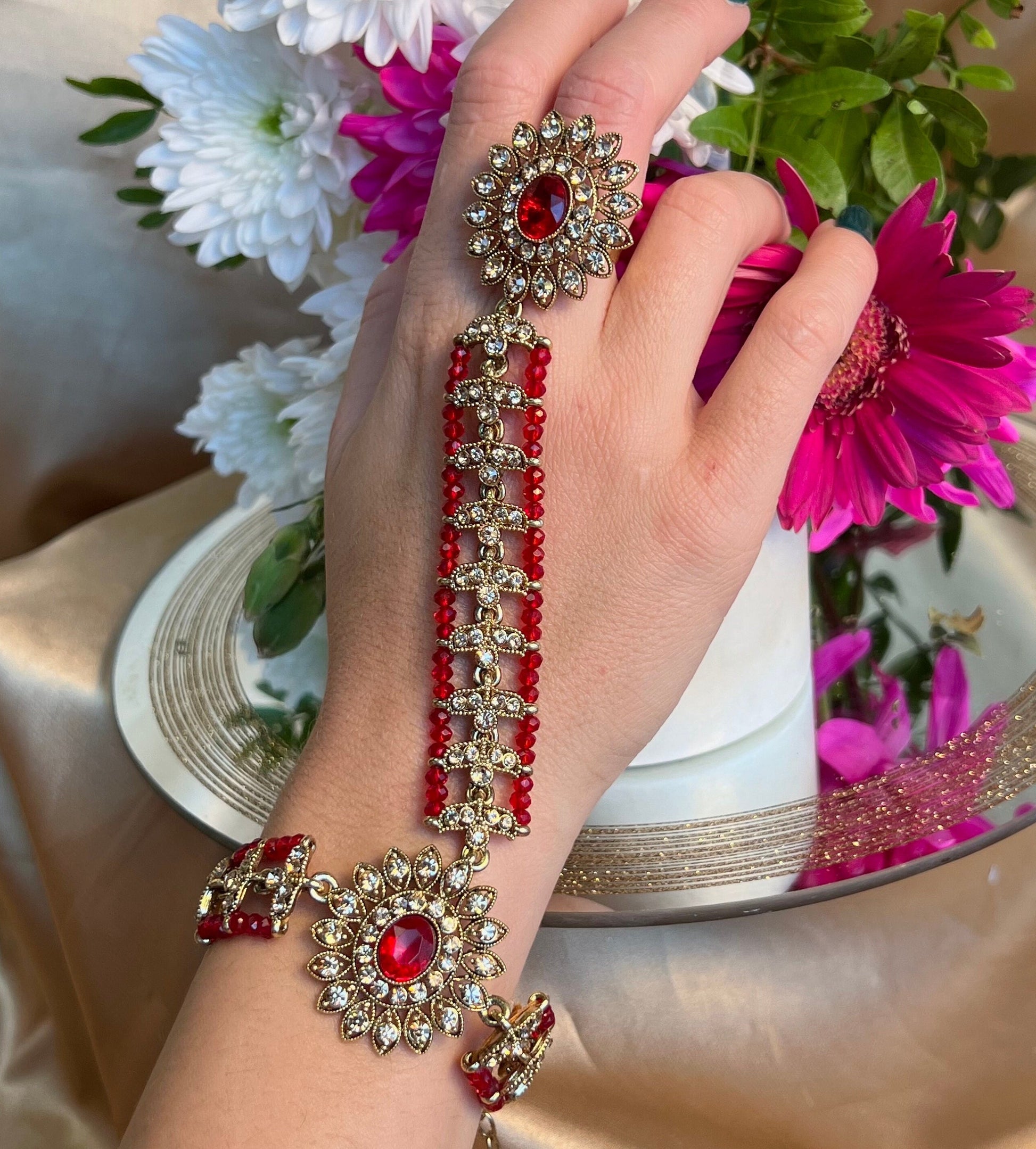 Maroon/Clear Hand Harness/ Fashion Jewellery/ Gift for Women/Indian/Pakistani style /Haathphool/Hand Accessory