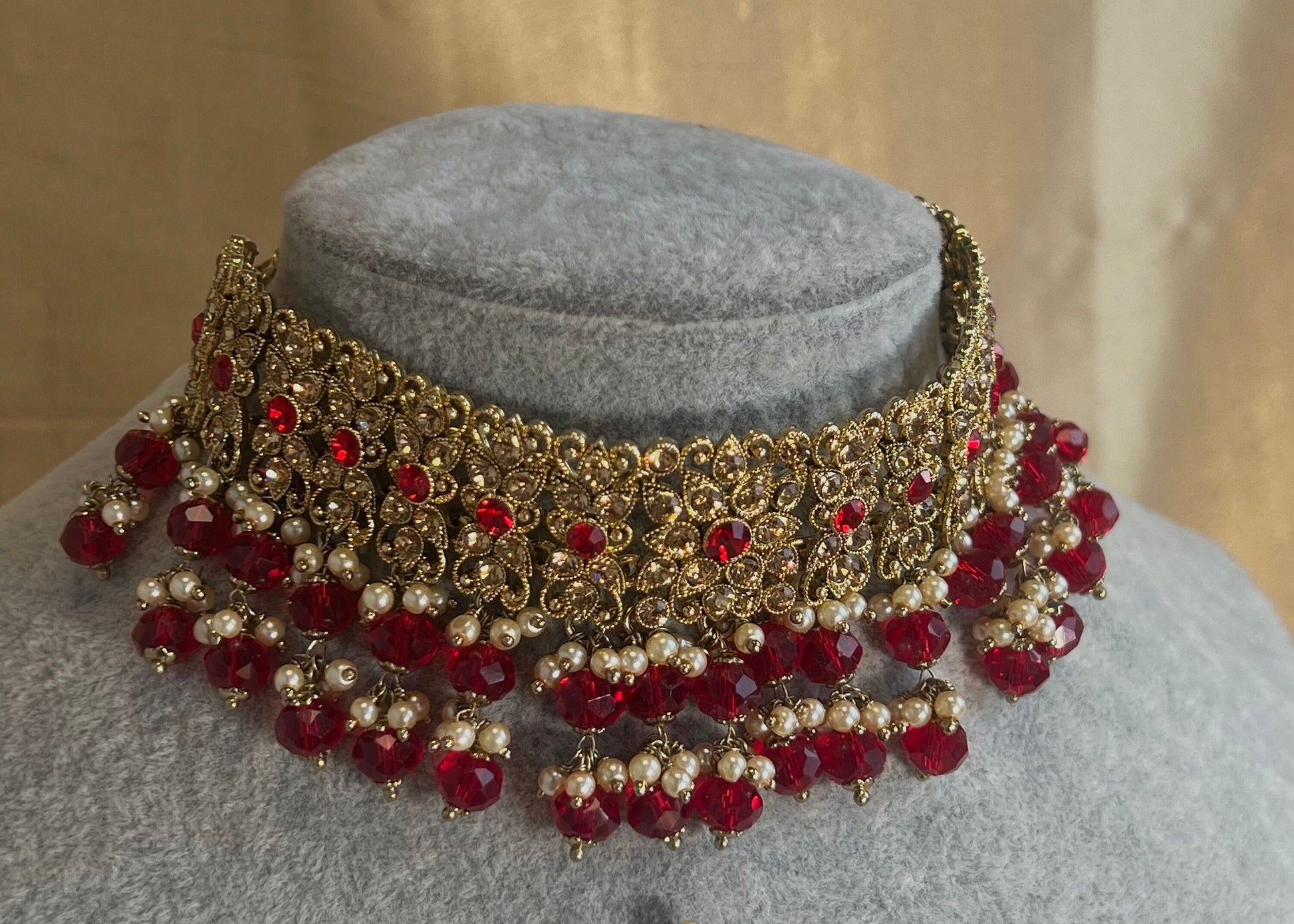 Maroon/Golden Choker Set Indian/ Pakistani/Fashion Jewellery/Gift for Women