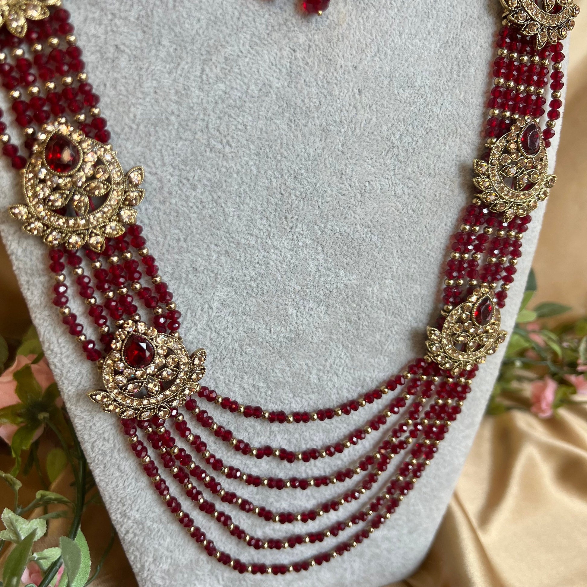 Maroon Necklace and Mala/ Indian/ Pakistani Style/Wedding/Bridal/Haar/Long Necklace/Gold