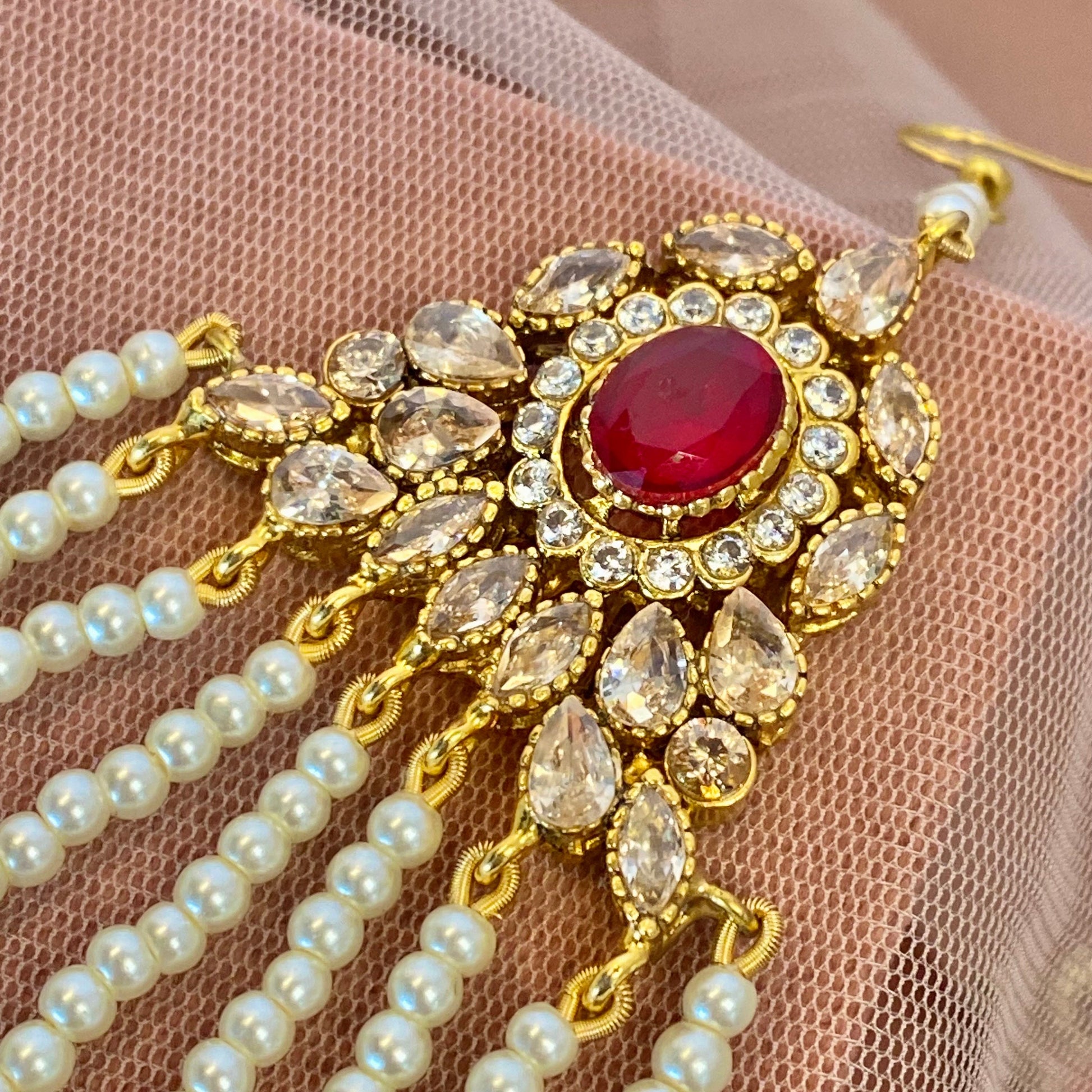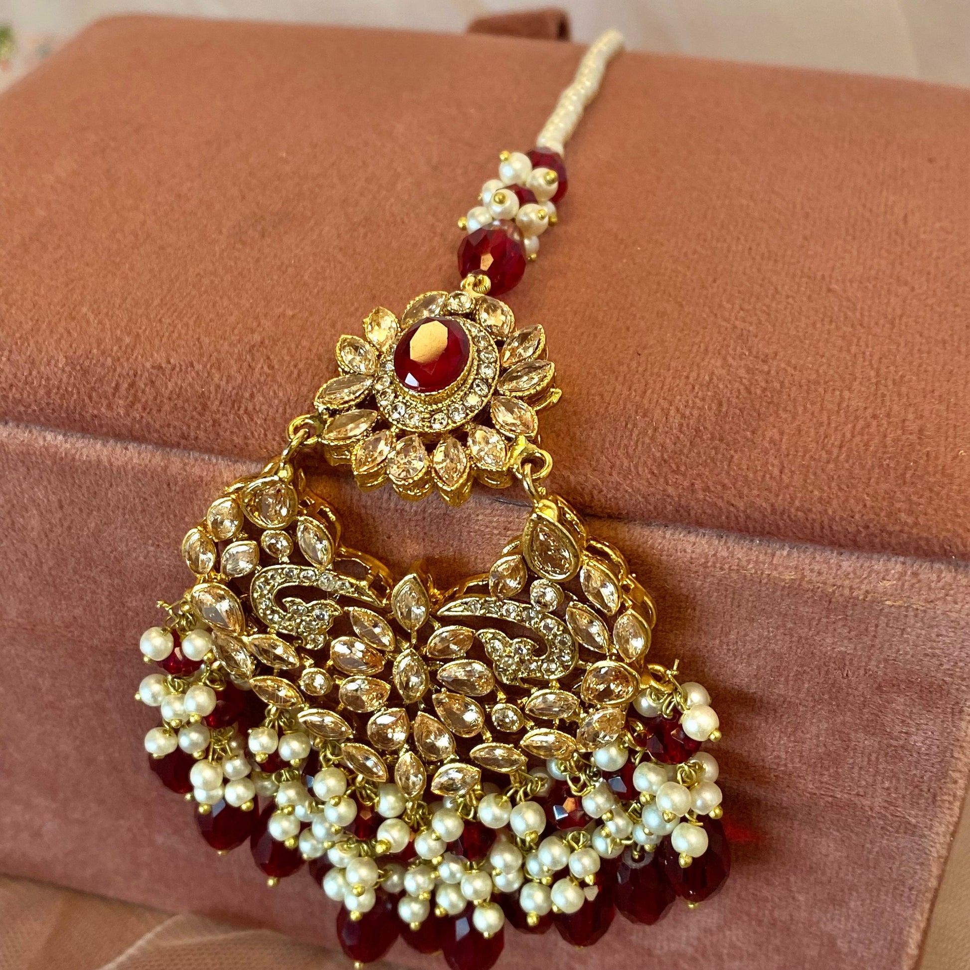 Maroon Pearl Jhumar and Tikka
