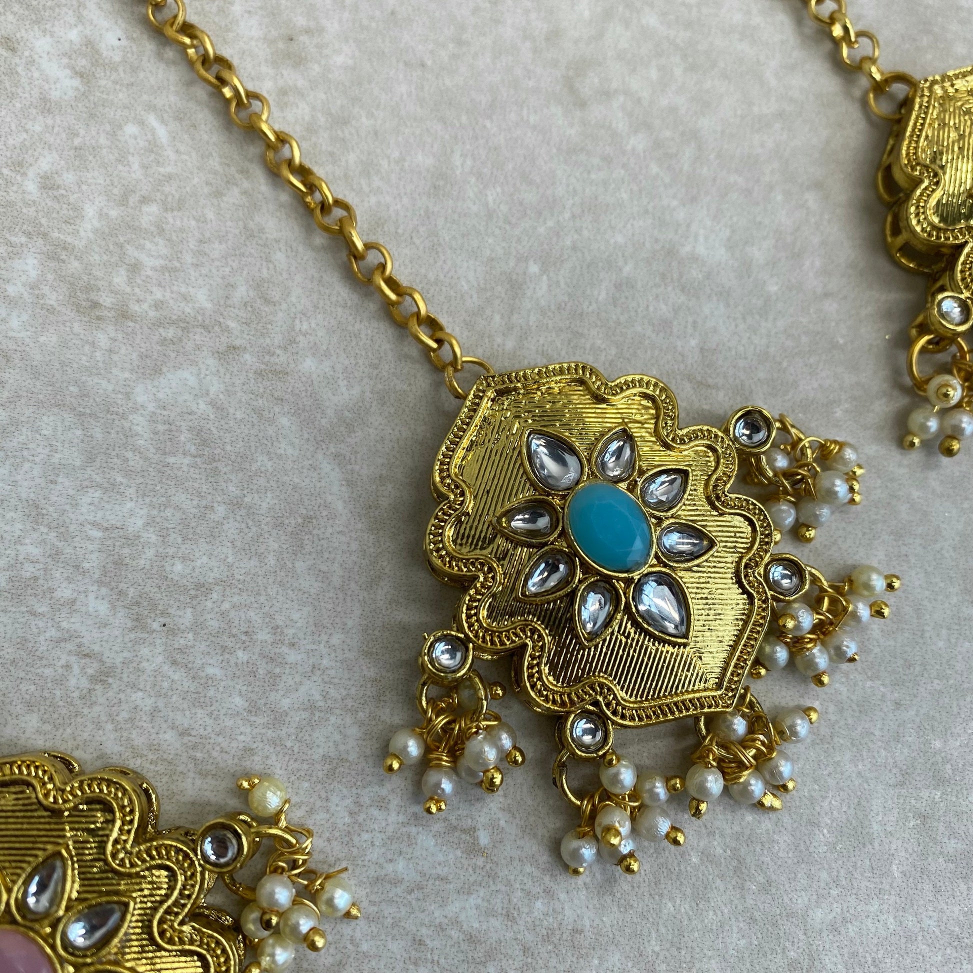 Medium Bright Gold Tikka -Blue/ Tikli/ Indian/ Pakistani Fashion Jewellery/Maang Tikkas