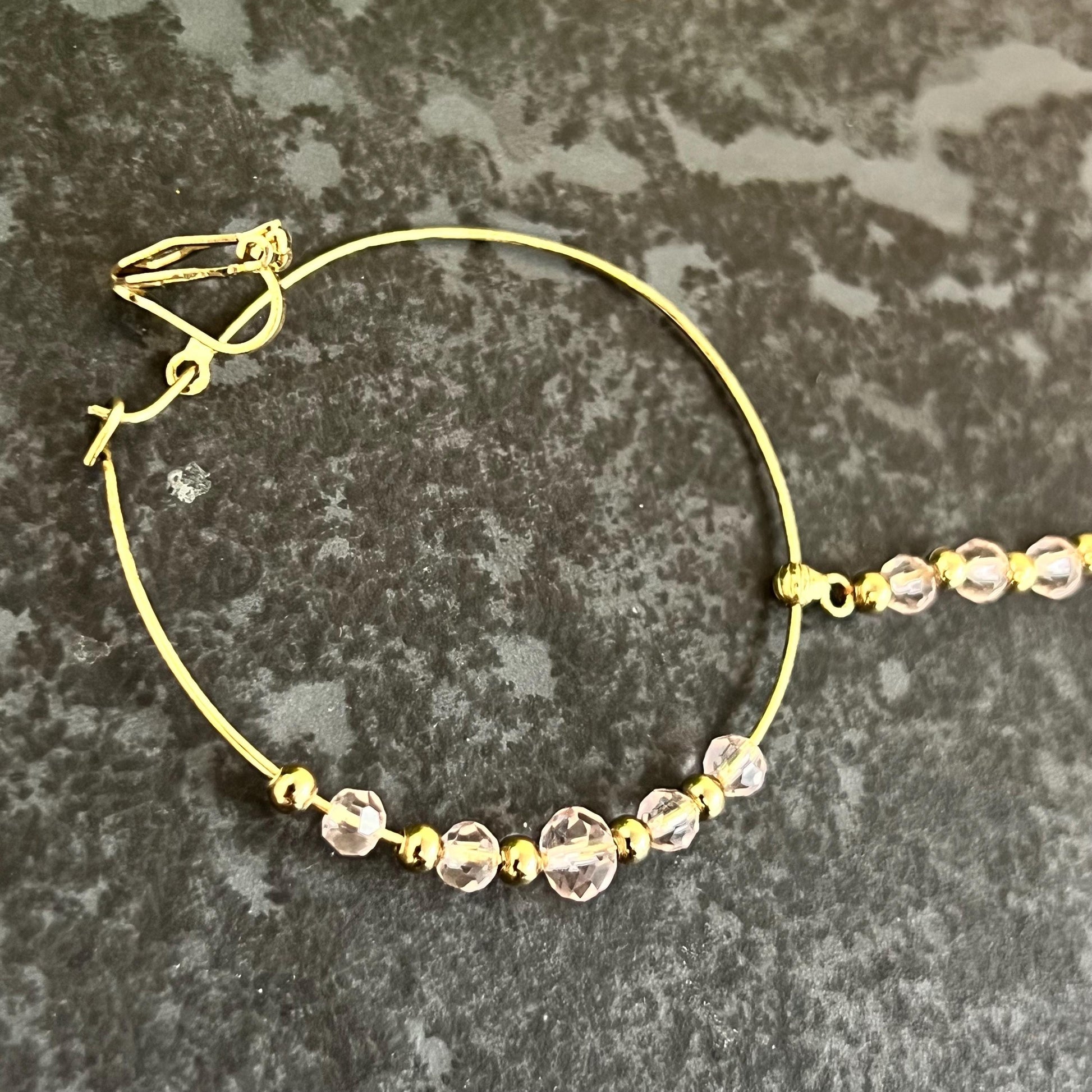 Medium Clip On Antique Gold Pink Nose Ring - Left Side Nose Ring - Light Pink Nose Ring/Indian/Pakistani style/Nath