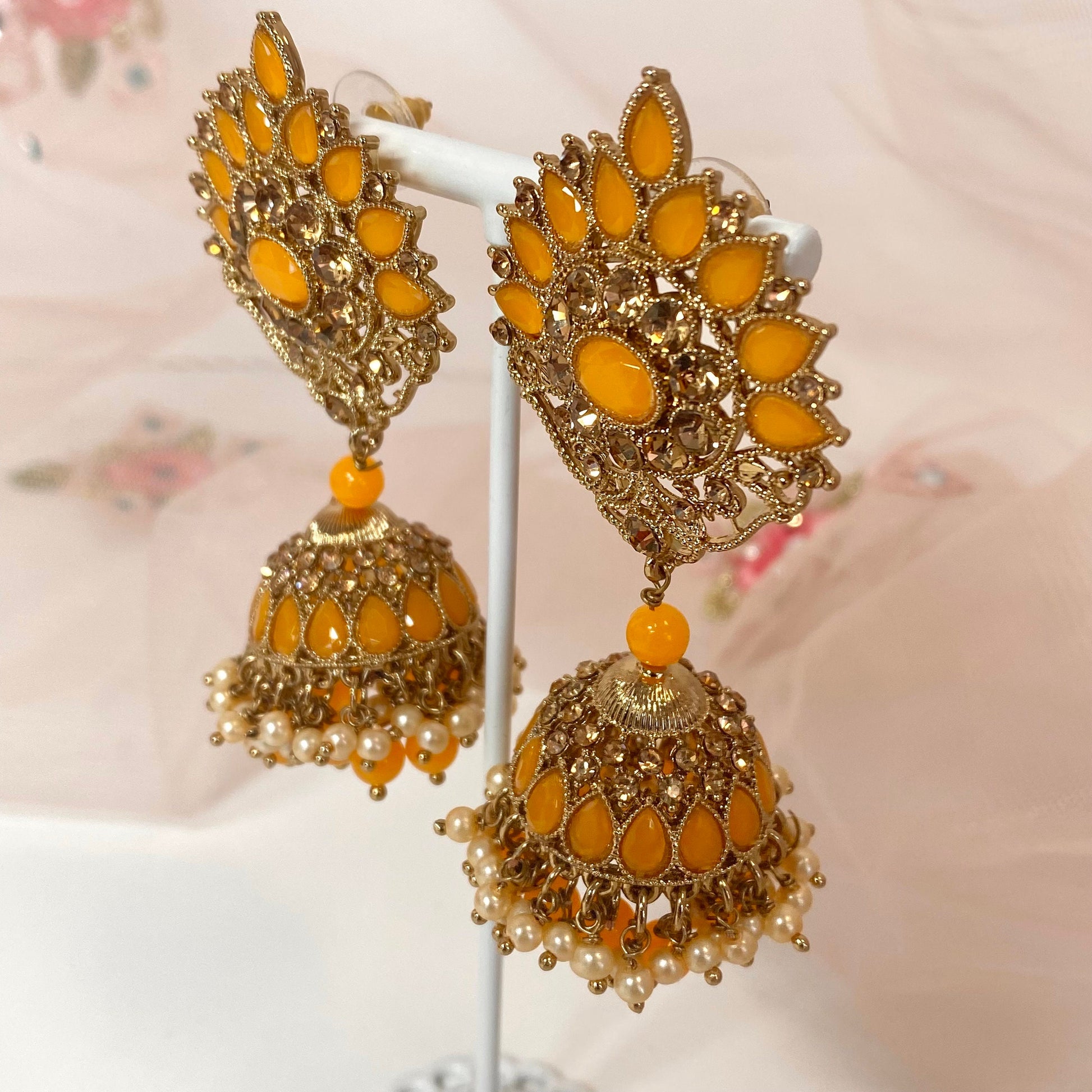 Medium Jhumka Earrings - Orange/ Indian Style Earring/Pakistani fasion/ Mendhia/Party/Haldi
