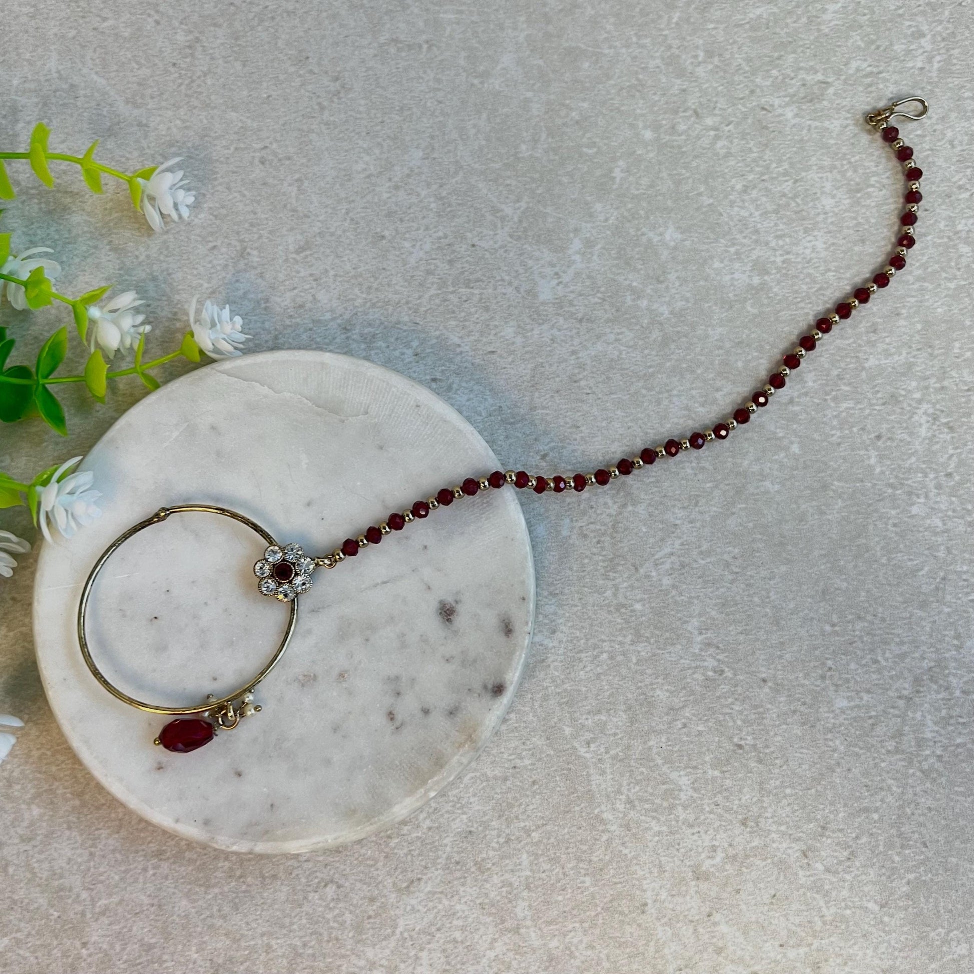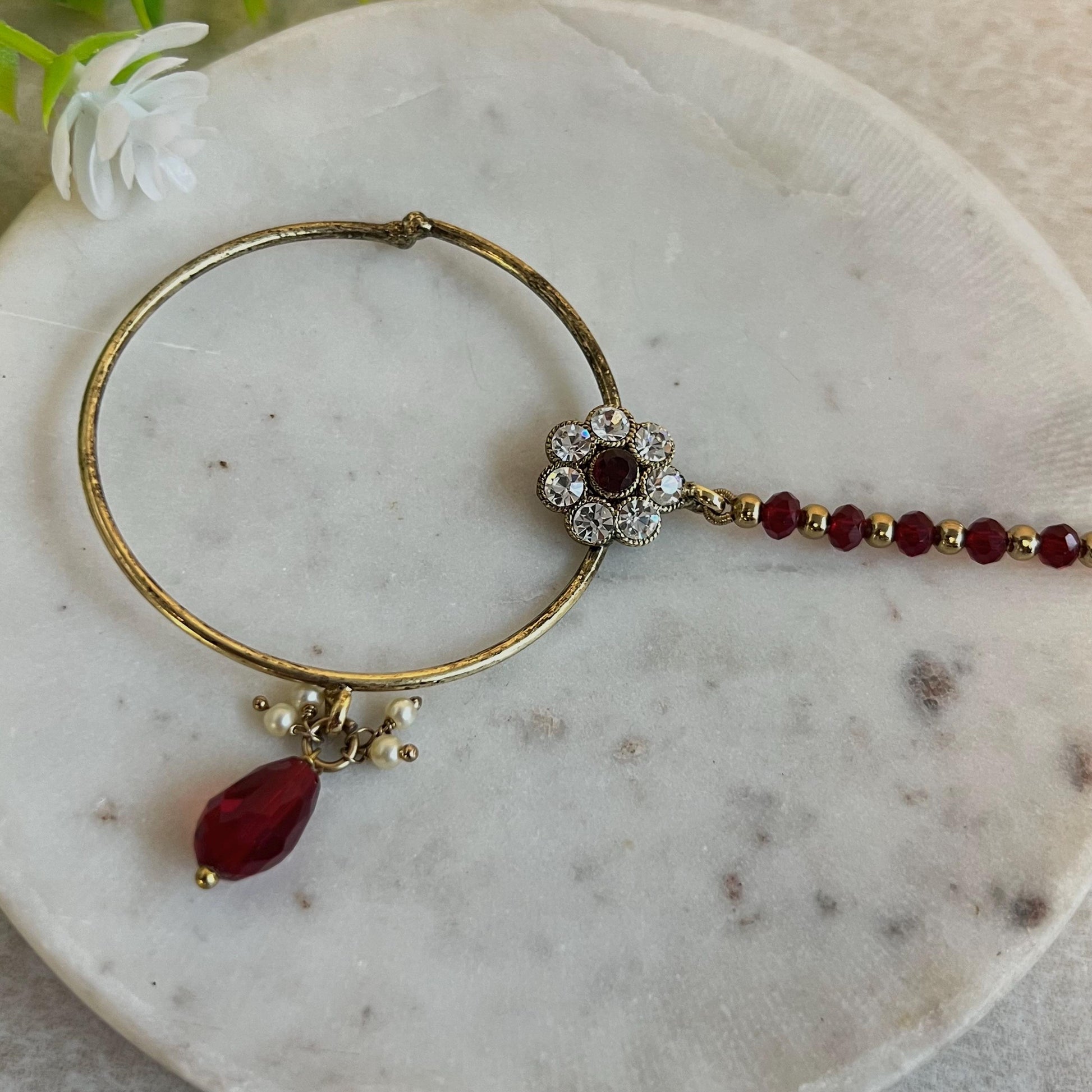 Medium Maroon & Clear Antique Gold Slide Type Nose Ring- Left Side - Slightly Imperfect/ Nose rings for Women/Indian/Pakistani style