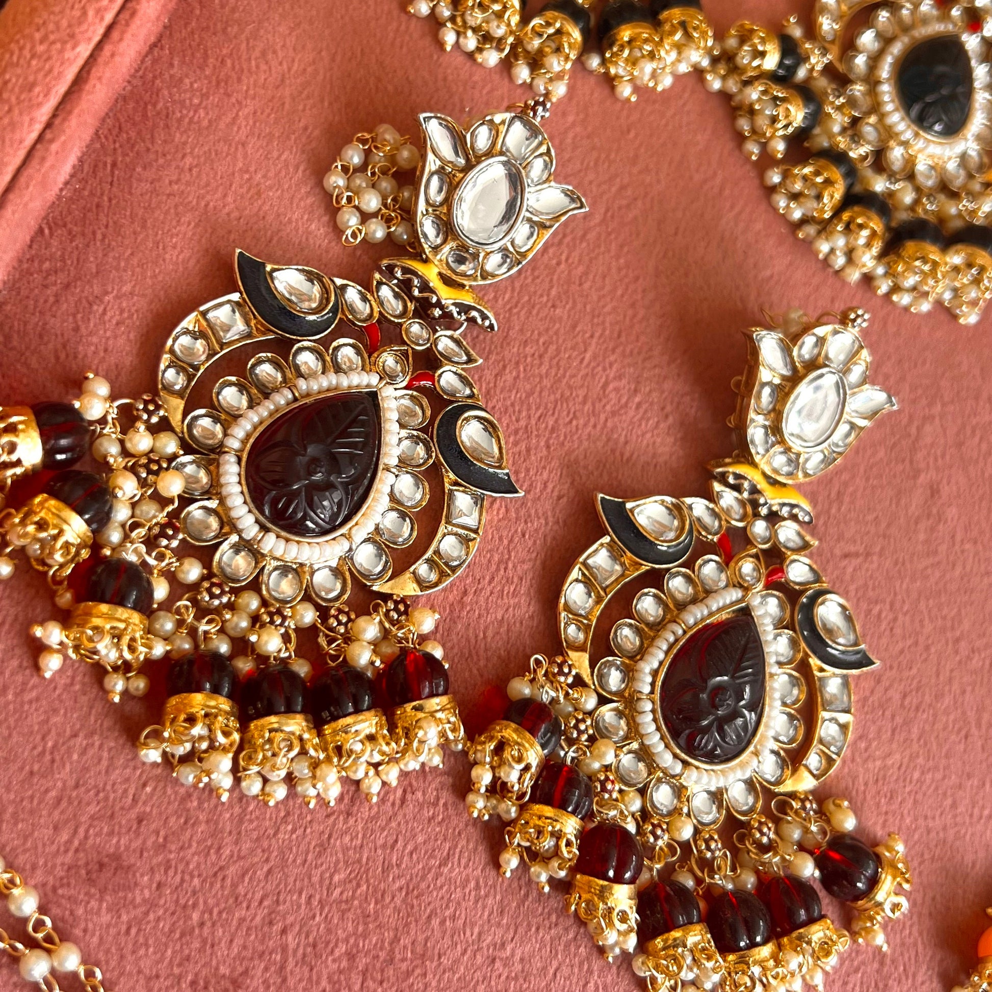 Meenakari/ Dark Maroon- Faux Kundan Ear Chain Earring Indian Style Earring/ Pakistani Fashion/Party Earring. Gift for women
