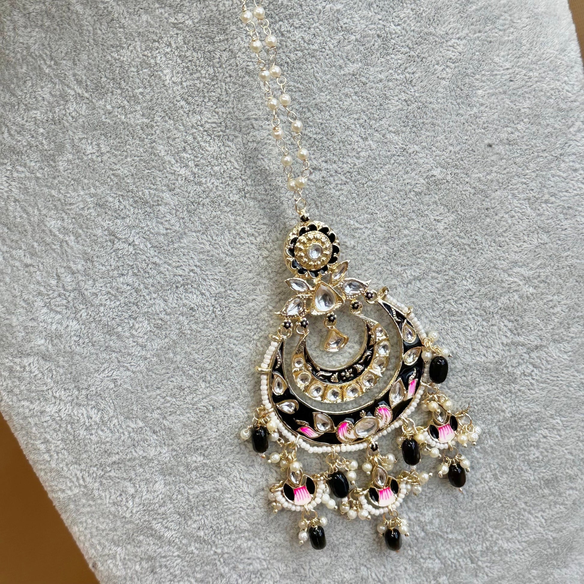 Meenakari/Faux Kudan Large Tikka - Black/ Tikli/ Indian/ Pakistani Fashion Jewellery/ Maang Tikkas