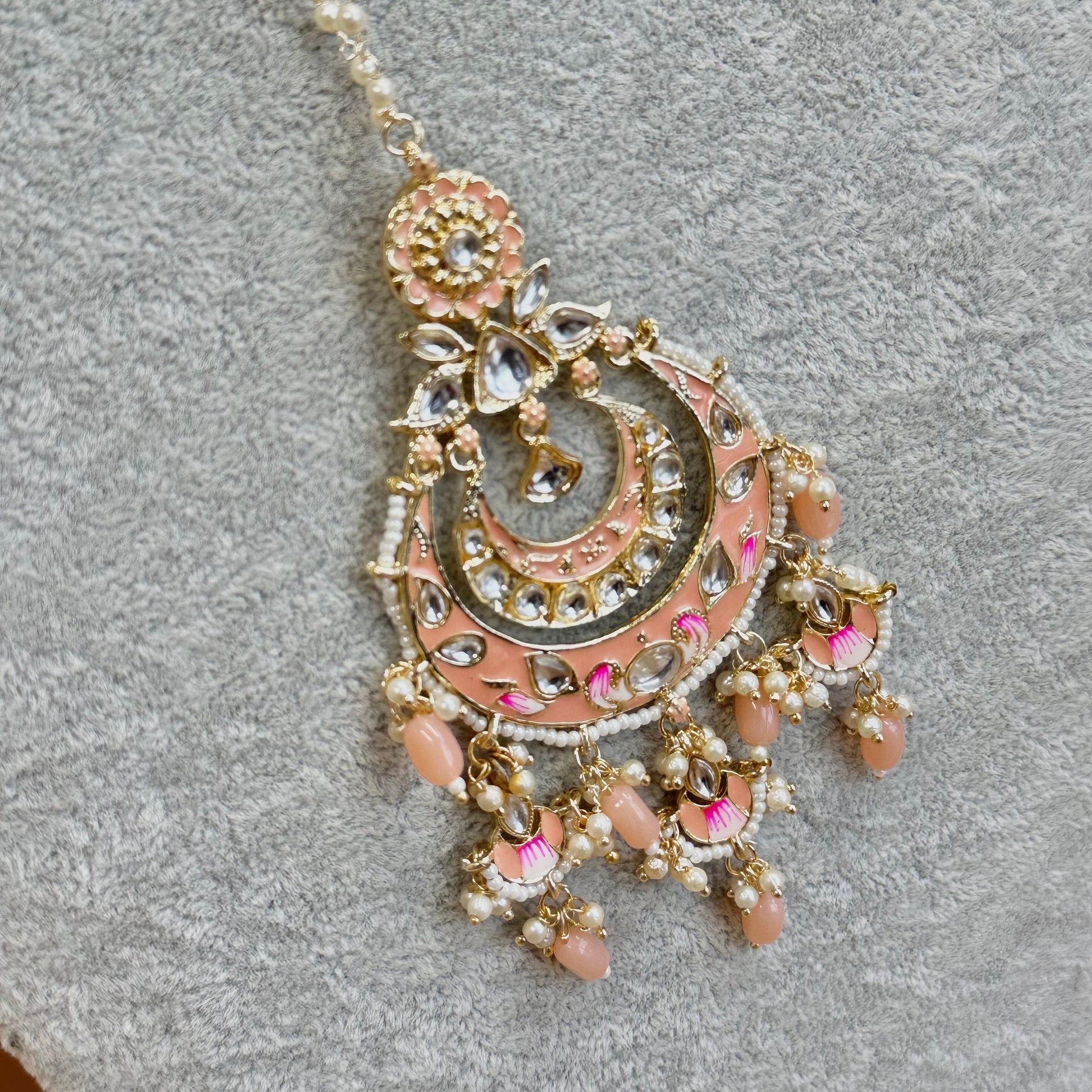 Meenakari/Faux Kudan Large Tikka - Peach/ Tikli/ Indian/ Pakistani Fashion Jewellery/Maang Tikkas