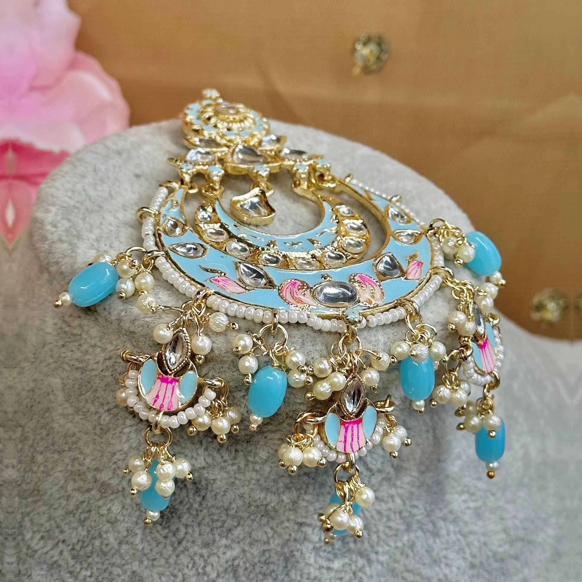 Meenakari/Faux Kudan Large Tikka - Sky Blue/Light Blue / Tikli/ Indian/ Pakistani Fashion Jewellery/Maang Tikkas