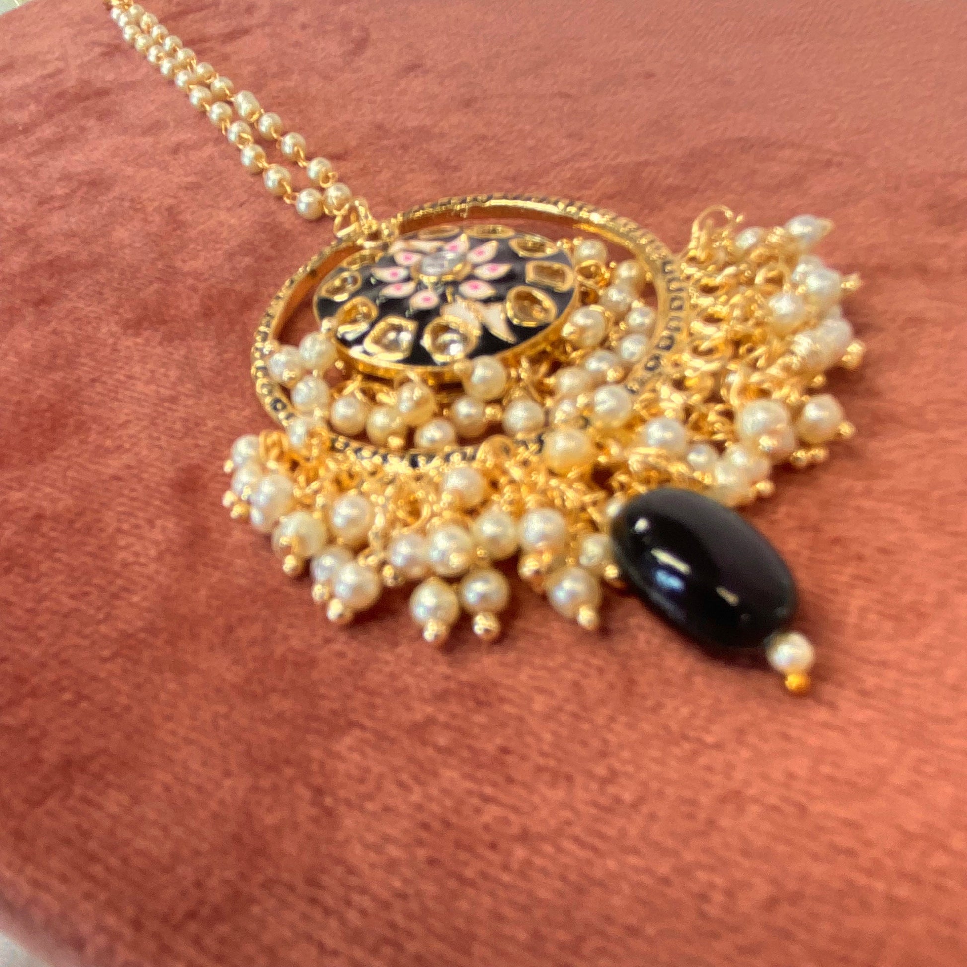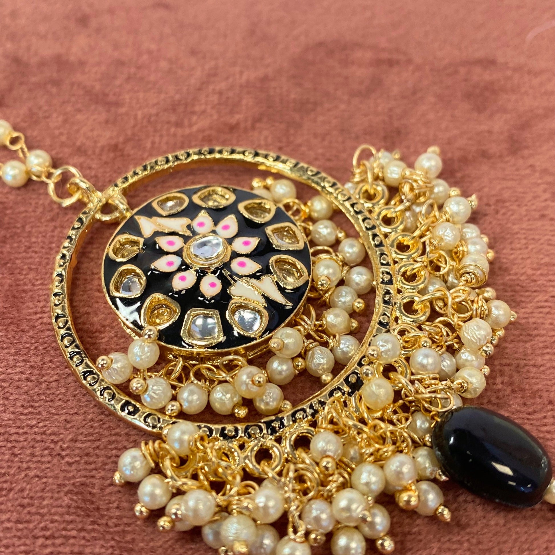 Meenakari/Hand-Painted Tikka (Black and Pink)/ Tikli/ Indian/ Pakistani Fashion Jewellery/Maang Tikkas