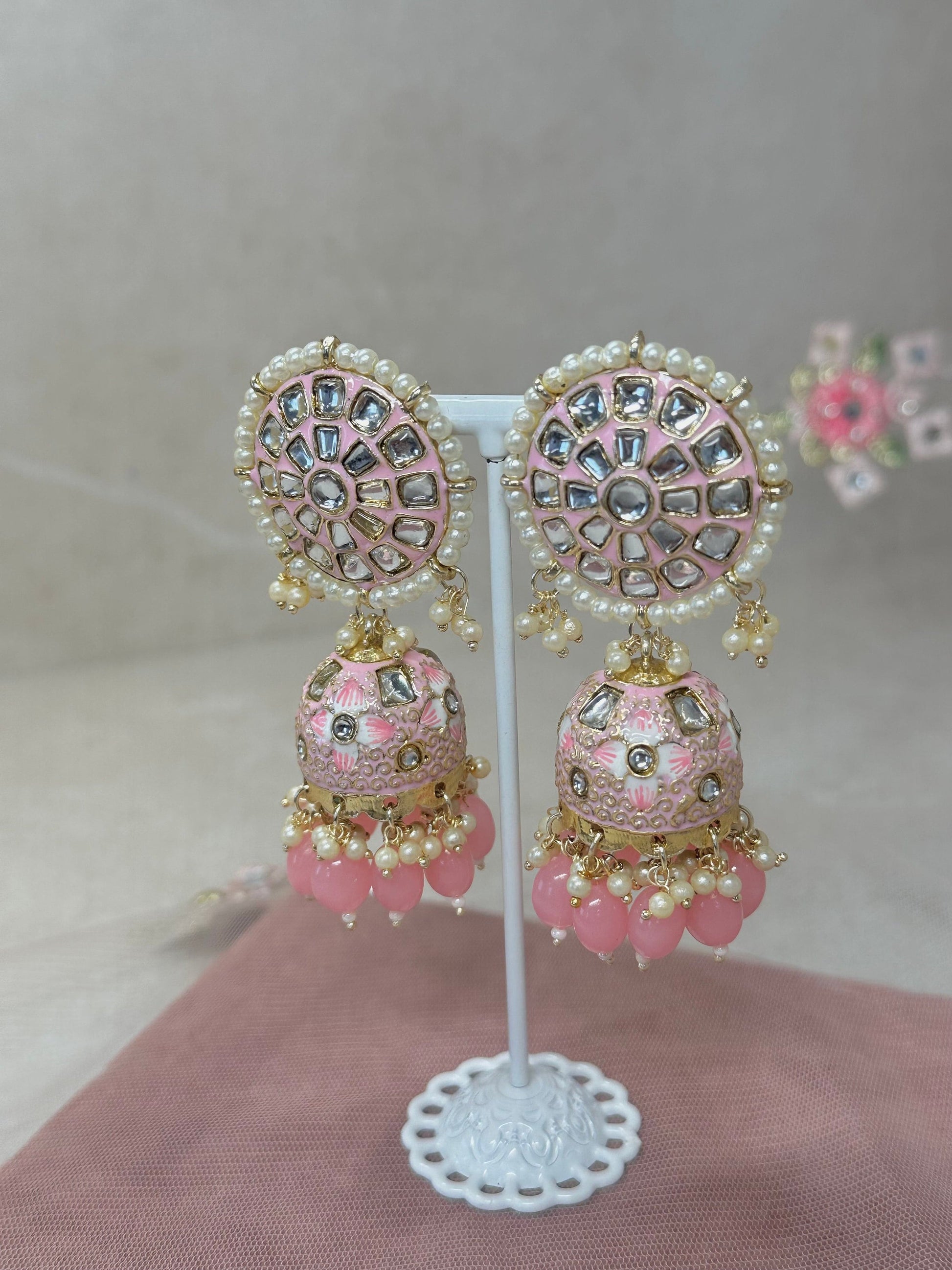 Meenakari/ Indian/ Pakistani Style/Painted Jhumka Earrings - Pink
