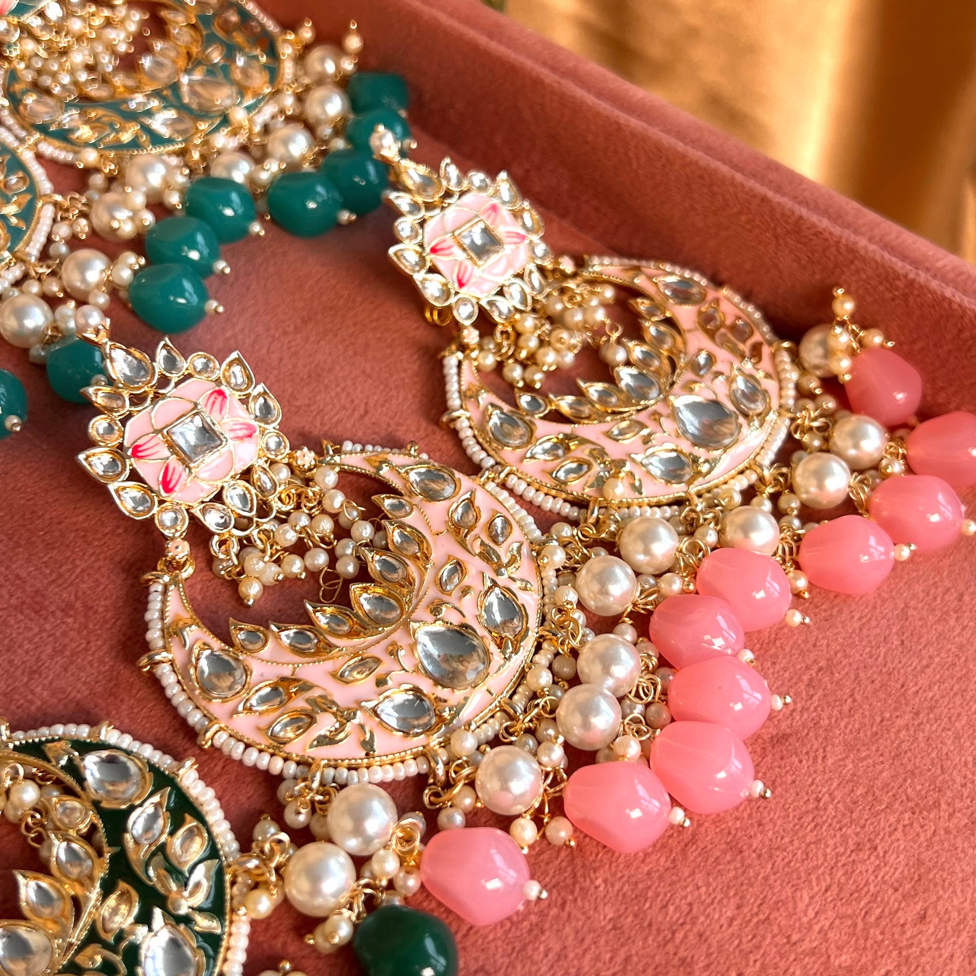Meenakari/ Indian/ Pakistani Style/ Pink- Hand Painted Kundan Earring Large/ Fashion Jewellery/ Gift for Women