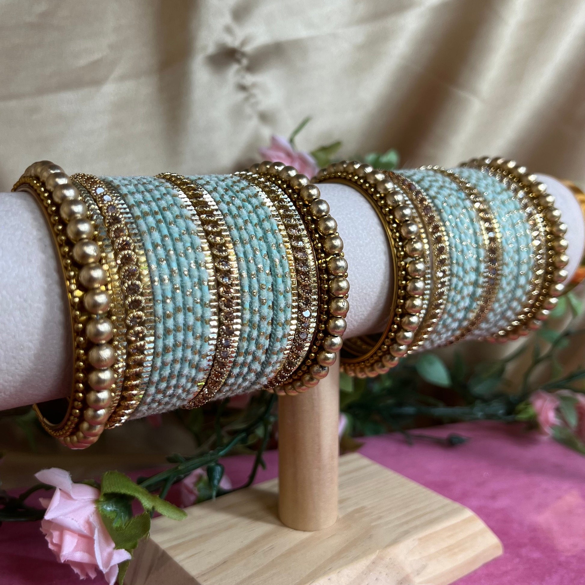 Midi Velvet Bangle Set- Mint/Indian/ Pakistani/Jewelley/ Fashion Bracelet