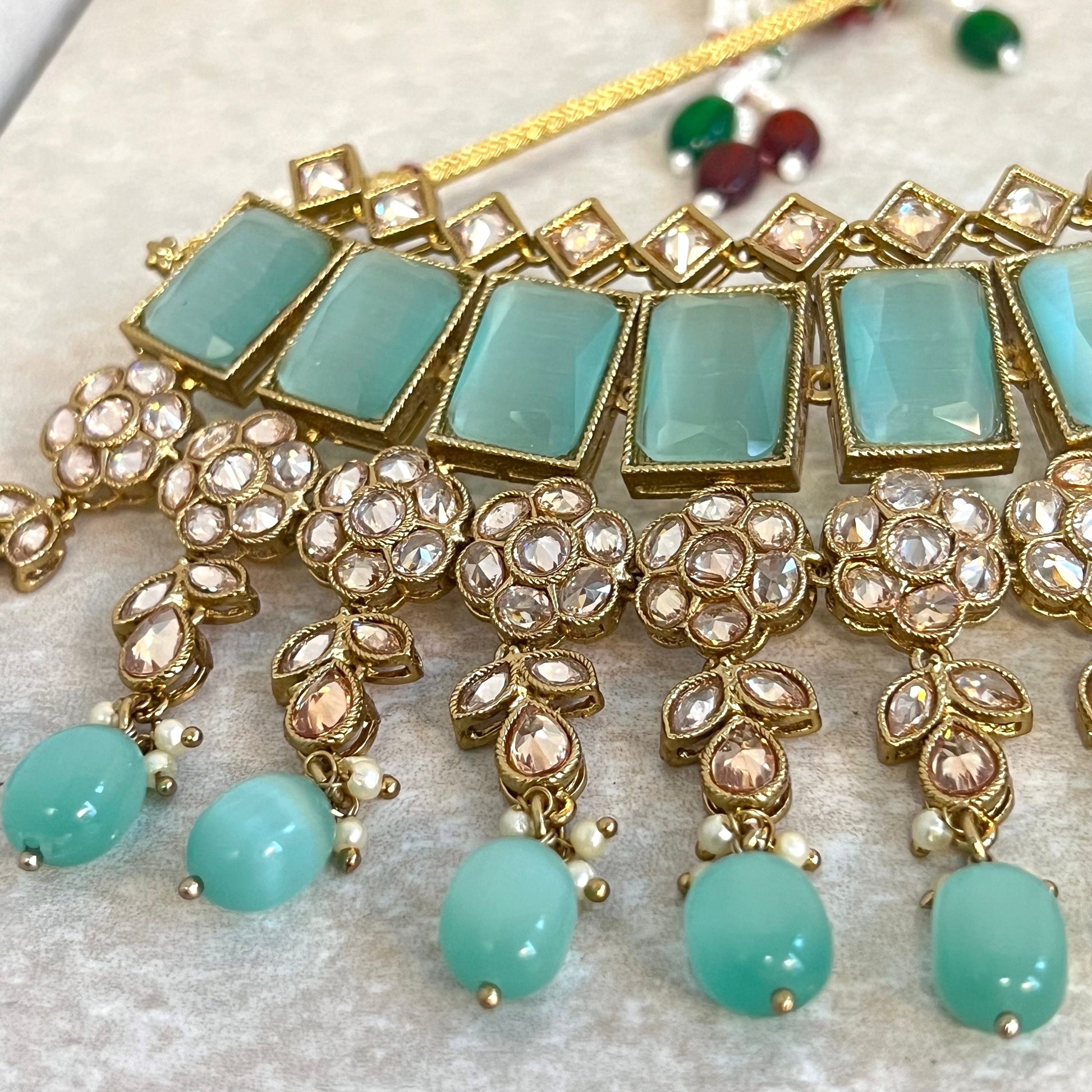 Mint Green Choker set Earring/ Tikka/ Tikli/ Indian/ Pakistani/Fashion Jewellery/ Gift for Women