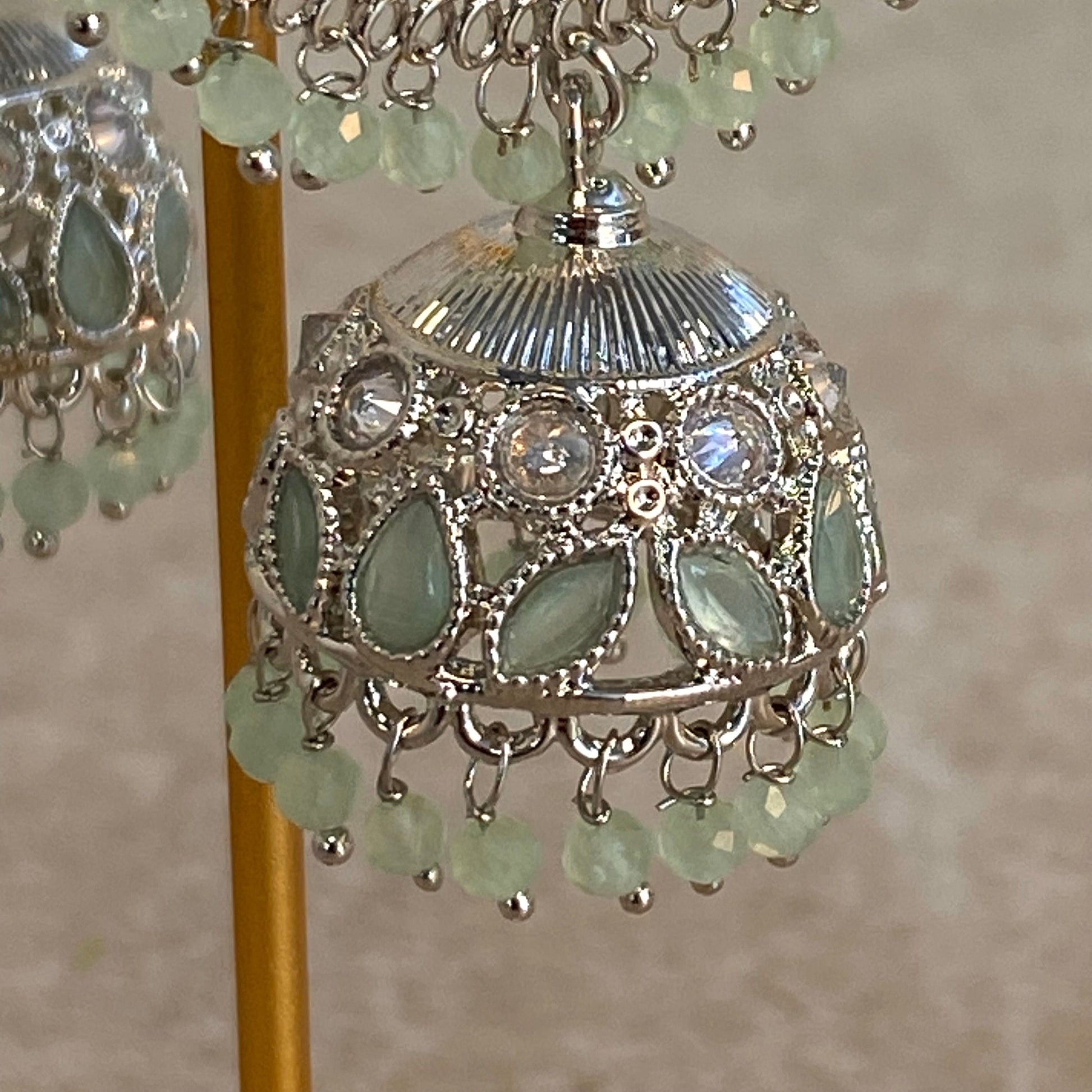 Mint Silver Crystal Jhumka Indian Hoop Earring/Indian Earrings/Pakistani Fashion/Indian Jewellery/Silver Jewellery/Gifts for Women