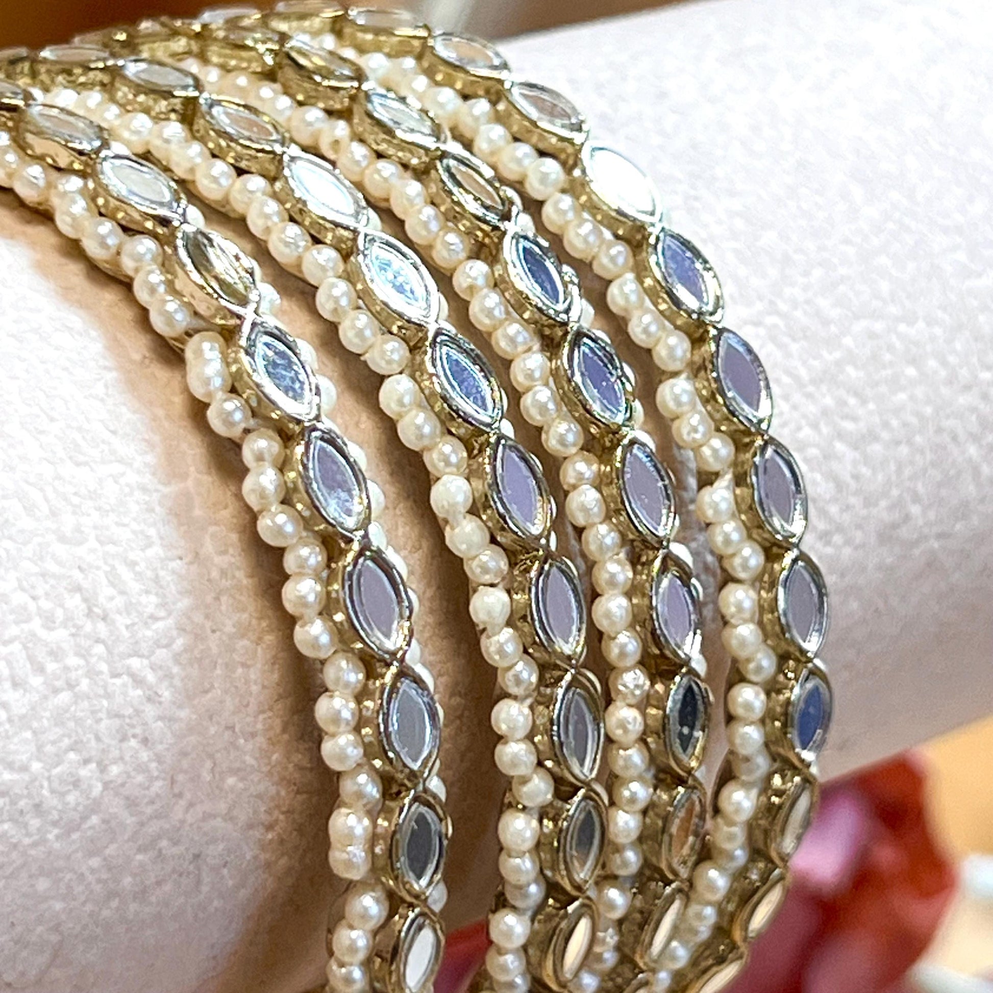 Mirror Bangles/ Clear- Antique Gold and Mirror Detail Bangles (Set of 4)/Indian/ Pakistani/Jewelley/ Fashion Bracelet/2.6 only/ Handmade