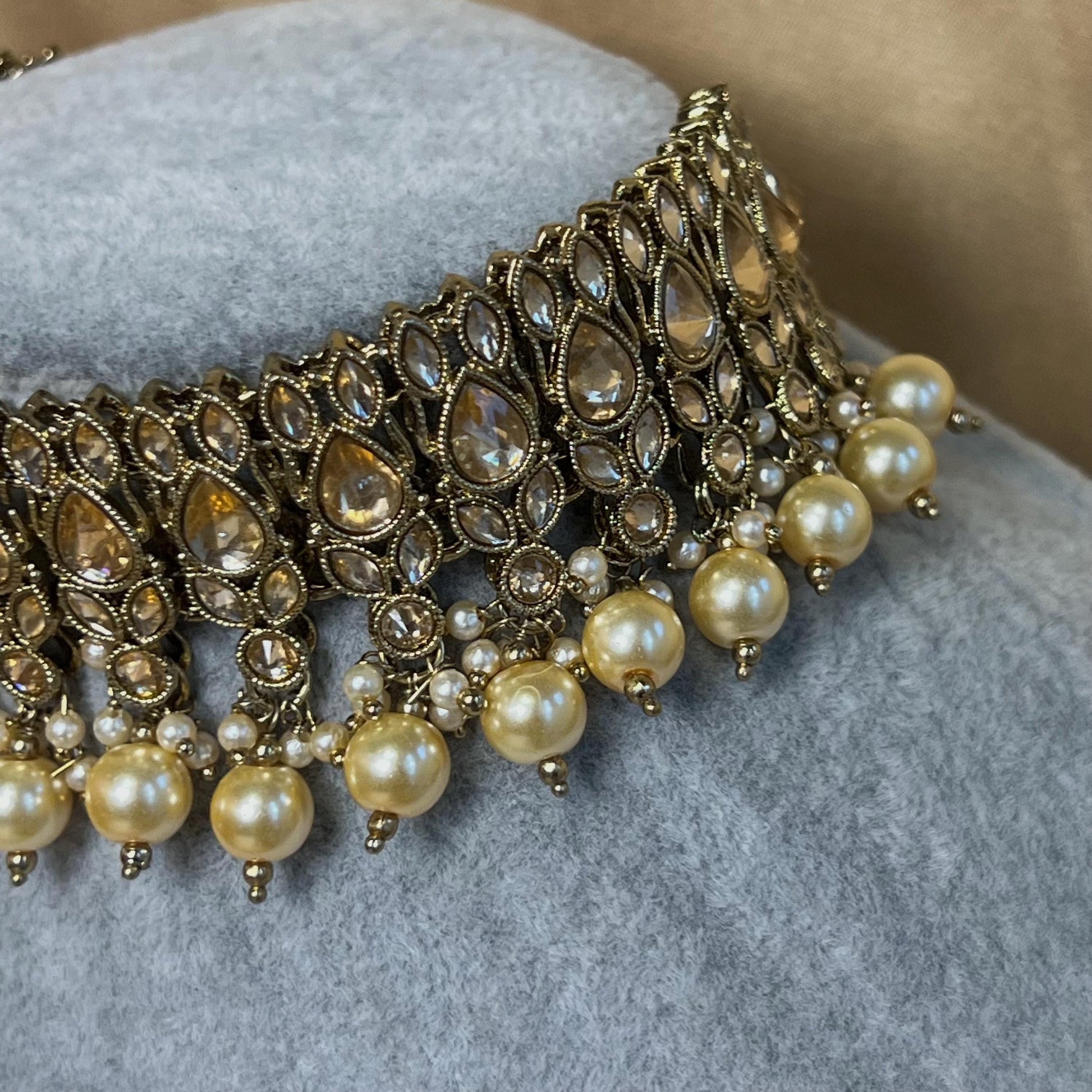 Mirror Necklace Set - Gold Ball Earring/ Tikka/ Tikli/ Indian/ Pakistani/Fashion Jewellery/ Gift for Women
