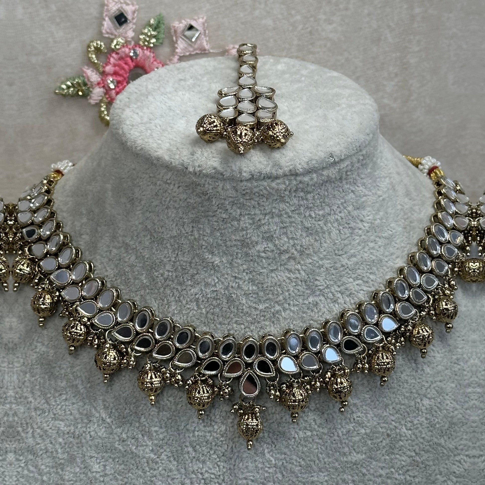 Mirror Necklace Set - Gold Ball Earring/ Tikka/ Tikli/ Indian/ Pakistani/Fashion Jewellery/ Gift for Women
