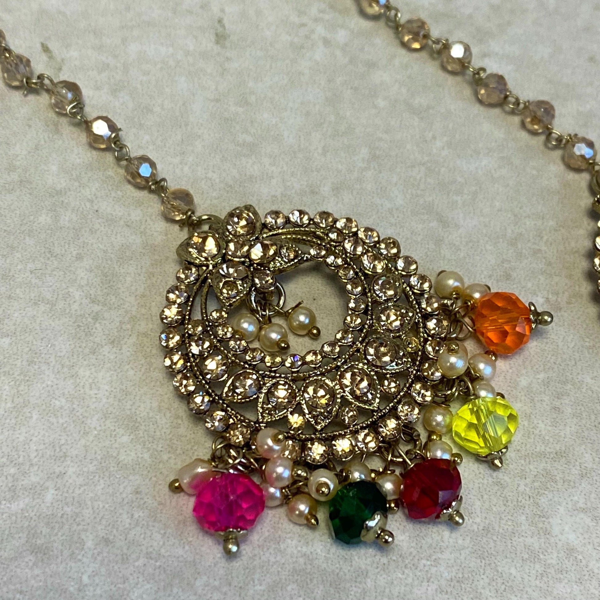 Multicolour Antique Gold Rhinestone Maang Tikka Bindya Indian Pakistani Bollywood Headpiece Mendhi Jewels Gift Fashion