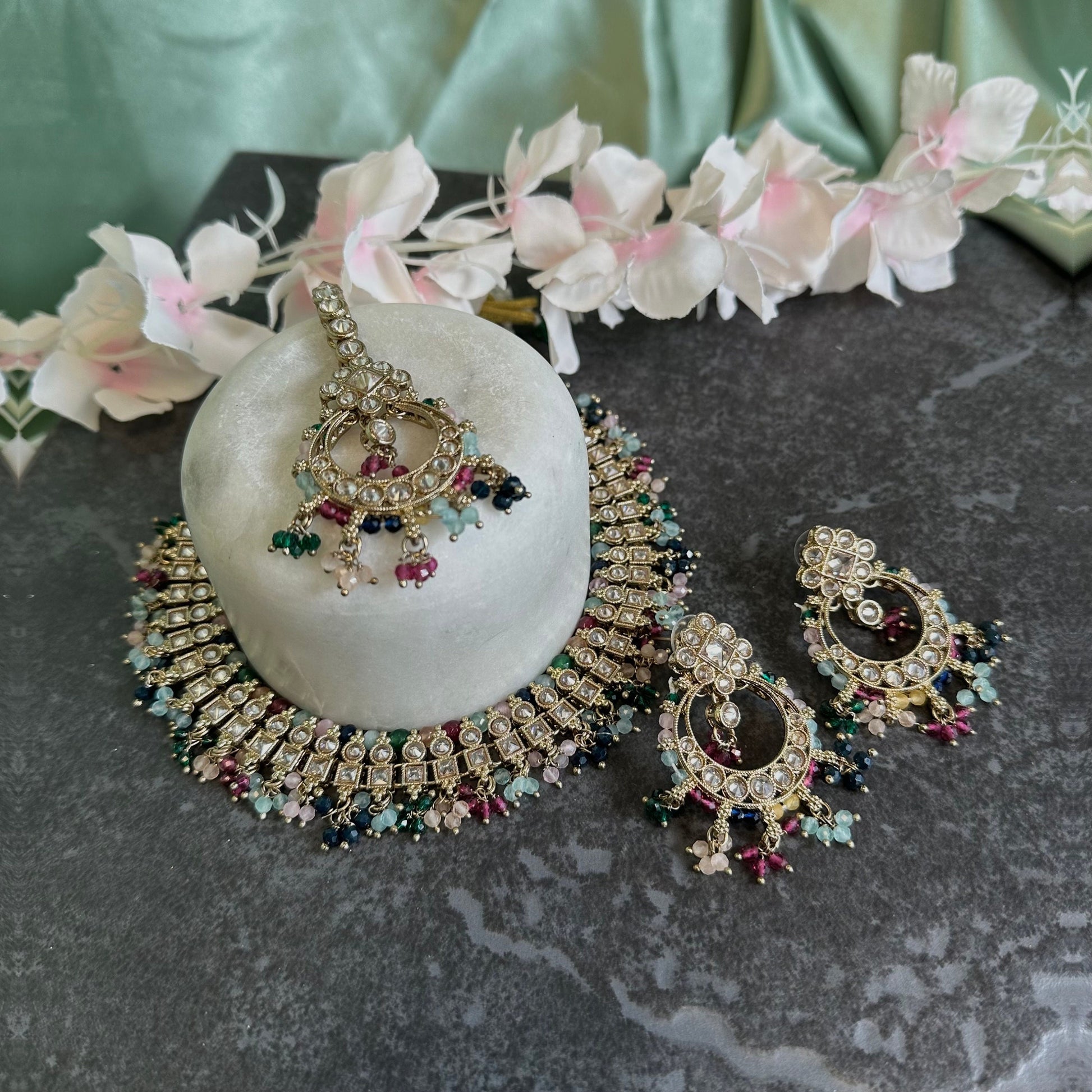 Multicolour Crystal Choker Set Earring/ Tikka/ Tikli/ Indian/ Pakistani/Fashion Jewellery/ Gift for Women